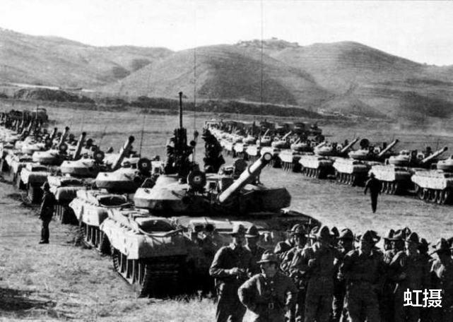 T-62中型坦克是冷战时期苏联装备量非常庞大的一种坦克,其先后生产了2万余辆。这种坦克也是第一种装备有高膛压滑膛炮的坦克,其拥有一门115毫米滑膛炮,配用尾翼稳定穿甲弹,可在1000米内击穿450毫米的装甲,还配有一挺7.62毫米PKT并列机枪。早期的T-62由于考虑在核战争中作战,因此并没有装需要人工操作的高射机枪。