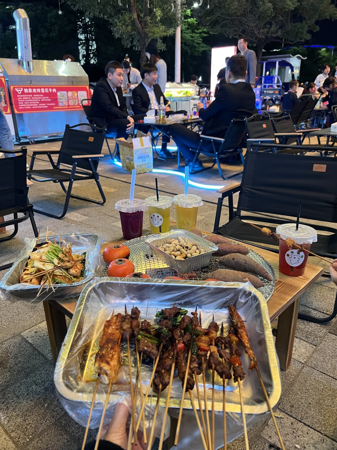 现在中正这里这么热闹吗? 这里的烧烤摊,牛肉串品种很多,新鲜看的到的新鲜👍🏻 关键是价格亲民到让人难以置信! 新鲜牛肉粒,一串只要1💰 新鲜食材滋滋冒油~敲好吃的 还有围炉烤地瓜,氛围感拉满! 和朋友们围坐在一起,烤着暖洋洋的火,聊着天,真是幸福感爆棚!🔥 别忘了试试他们的酒糟煮🍺很适合现在的天气,一口下去,整个人都暖和了起来。 旁边还有柠檬茶摊,各种饮品新鲜又好喝,解腻又提神!🥤 📍东莞长安中正广场