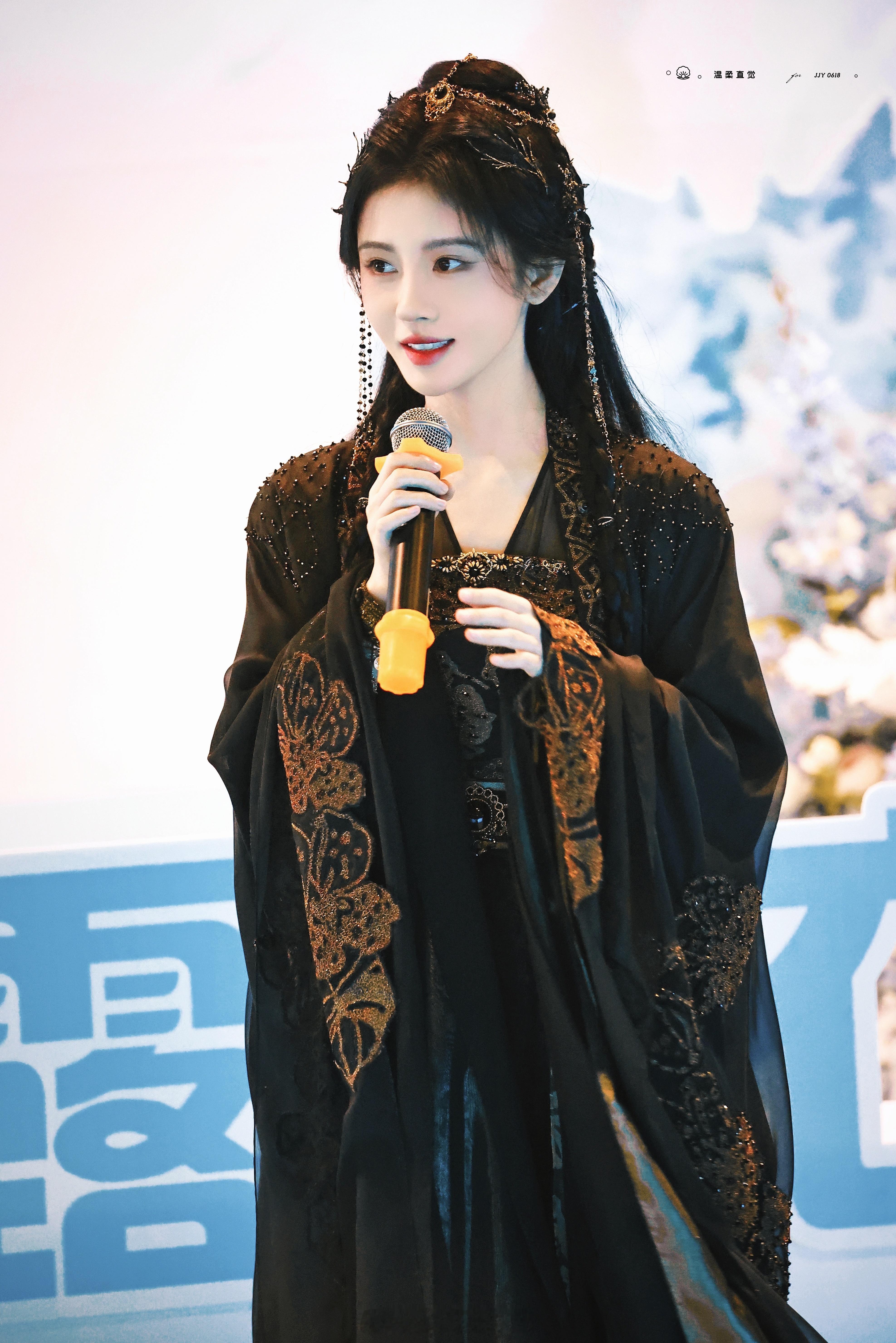 鞠婧祎月鳞绮纪亮片拖地黑裙 神女降临人间啊 老天鹅