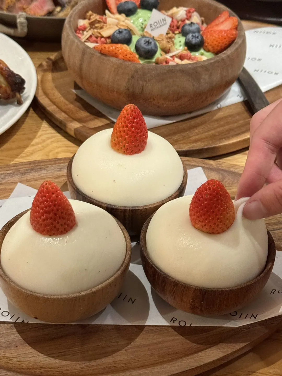 随手一拍都很出片的餐厅 还得是用心啊 5G过圣诞 店里氛围已经很浓郁了 新上的圣诞系列 真的好看又好吃 爱惨了 ✅草莓脆脆大福:软软糯糯的外皮 中间奶油细腻柔滑 夹心红豆沙不会很甜 里面还有脆脆 搭配顶上酸酸甜甜的草莓 🍓 ✅番茄海鲜意面:酸酸甜甜 用料十足 海鲜分量给的很足 酱汁浓郁 超好吃 ✅开心果栗子松饼:开心果奶油➕松饼 完全不会腻 开心果味超浓郁 里面的栗子也很细腻 造型就是一颗圣诞树 还可以点蜡烛许愿