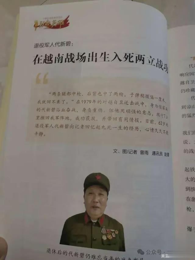代新碧房县青峰镇人,他在1979年的对越自卫还击战荣立了一等功和二等功,在他身上,4个弹孔疤痕仍清晰可见,三等甲级残疾。