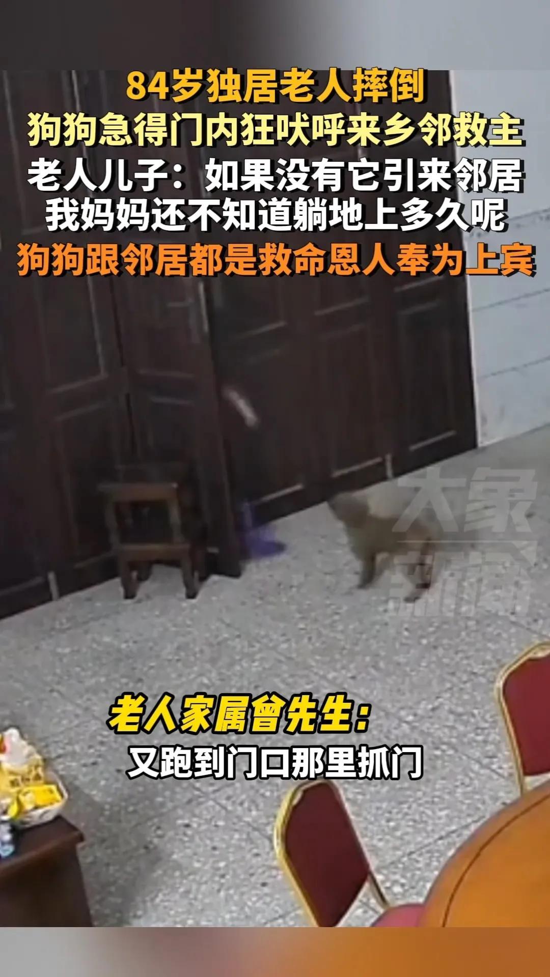 这是一条护主神犬!84岁独居老人在家摔倒,小狗急得四处狂叫,却无能为力!不料,随后的一幕让人泪目了!老人的儿子说:如果没有它,我妈还不知道躺地上多久呢,狗狗跟邻居都是救命恩人,今后奉为上宾!网友:这也说明老人平常和邻里关系相处很好。 (信息来源:8旬独居老人摔倒狗狗狂吠喊来乡邻 家人:会好好奖励答谢 中国网三农 2024年12月3日) 原来忠犬护主,并不仅仅发生在童话故事里,还发生现实,而这只狗也是完美诠释了忠诚两个字。 11月27日,广西柳州一个普通的社区,一条小狗的狂吠打破了午后的宁静。这吠声并非寻常,它预示着一场意外的发生,也预示着一场爱与责任的接力即将展开。 事情的中心是一位84岁的独居老人。老人家身体一向硬朗,疫情期间搬回老家独自生活,平日里自己照顾自己,完全没问题。孩子们虽然工作忙,但每周都会回家看看老人家。谁也没想到,意外会突然降临。 那天中午,厨房里传来一阵沉闷的声响。老人在准备午饭时,不知怎么脚下没站稳,重重地摔倒在地。更糟糕的是,她的额头磕在了饭桌的棱角上,顿时鲜血直流。一阵眩晕袭来,老人失去了意识,瘫倒在地。 这时,一直陪伴在老人身边的一只泰迪犬察觉到了异样。这只小狗已经在老人身边生活了四五年,形影不离,早已成为她生活中不可或缺的伙伴。它立刻跑到老人身边,焦急地嗅闻着,低声呜咽。发现主人没有反应后,它开始在院子里狂奔,急得团团转,一边跑一边发出尖锐的吠叫声。 它一次次地跑到大门前,用爪子拼命地挠着铁门,试图引起外界的注意。它又跑回老人身边,仿佛在确认主人的情况。然后,它再次冲向大门,继续狂吠,如此反复。这不仅仅是简单的吠叫,更像是一种有意识的求救信号。 小狗的异常举动很快引起了邻居们的注意。这阵急促的犬吠声,在这个平日安静的社区里显得格外刺耳。老人的侄媳妇也听到了动静,她住在附近,经常过来照看老人。心里隐隐觉得不安,她加快脚步,朝着老人家走去。 大门并没有上锁,侄媳妇推门而入,眼前的景象让她大吃一惊。老人倒在地上,一动不动,额头上的伤口触目惊心。她立刻大声呼喊,附近的邻居听到呼救声,纷纷赶来。 大家没有丝毫犹豫,迅速将老人抬了出来。有人跑去开车,有人拨打了急救电话。整个社区仿佛被一股无形的力量凝聚在一起,每个人都在尽自己所能,争分夺秒地展开救援。 这一幕也让大家想起,这位老人平日里就与邻居们相处融洽。她为人热情,待人真诚,经常和邻居们互相帮助,邻里关系非常和睦。俗话说,远亲不如近邻,在这个关键时刻,邻居们的热心帮助,无疑是雪中送炭。 老人的儿子在得知消息后,第一时间赶到了医院。看到母亲躺在病床上,他既心疼又后怕。虽然母亲平时身体不错,也能自理,但毕竟年事已高,独居生活中确实存在很多安全隐患。 这次意外,也让他开始反思。他意识到,即使老人能够自理,也需要更多的关注和照顾。独居生活虽然能够保持一定的独立性,但也意味着一旦发生意外,很难得到及时的帮助。 对此事,你怎么看?