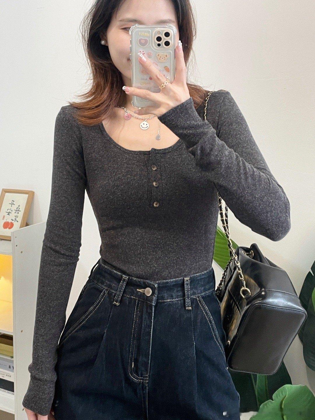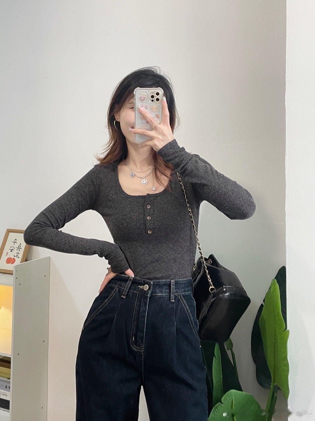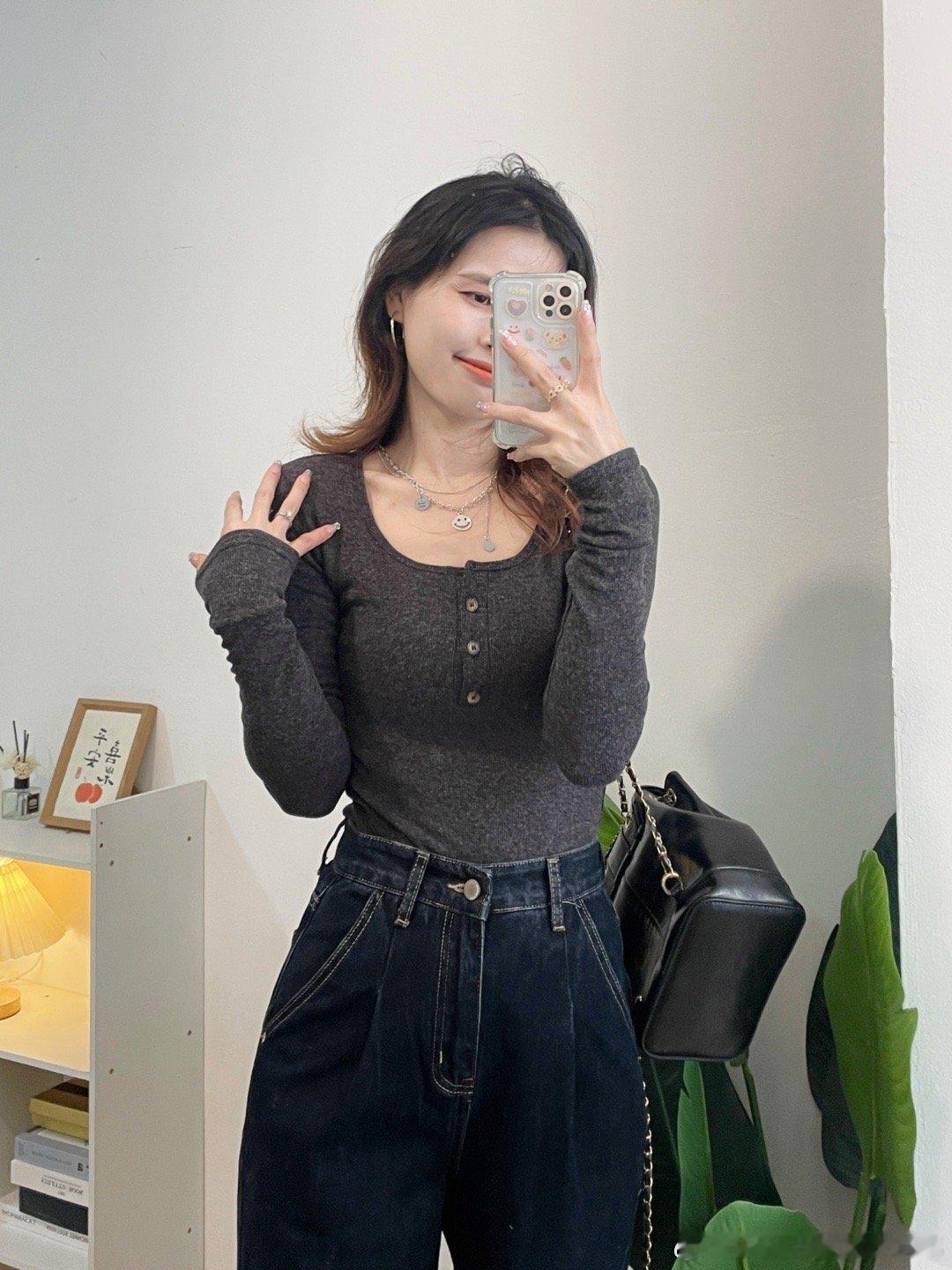 灰黑色打底衫,上面有一层绒毛,很保暖哦!脱了外套超级显腰细~,搭配上期上新的牛仔裤一套很好看~