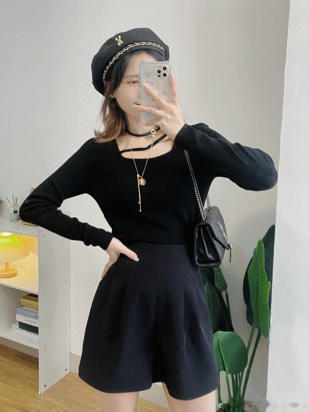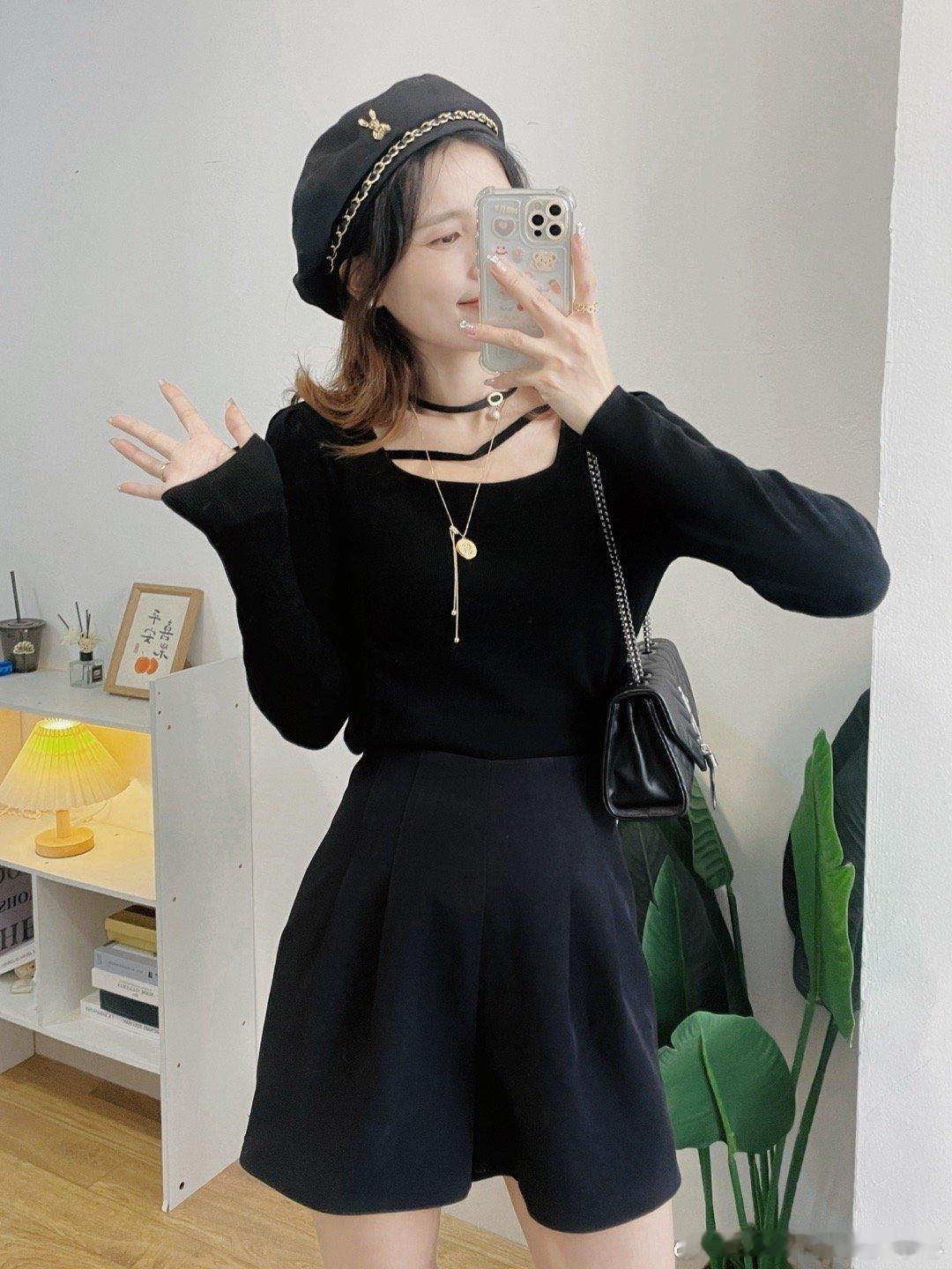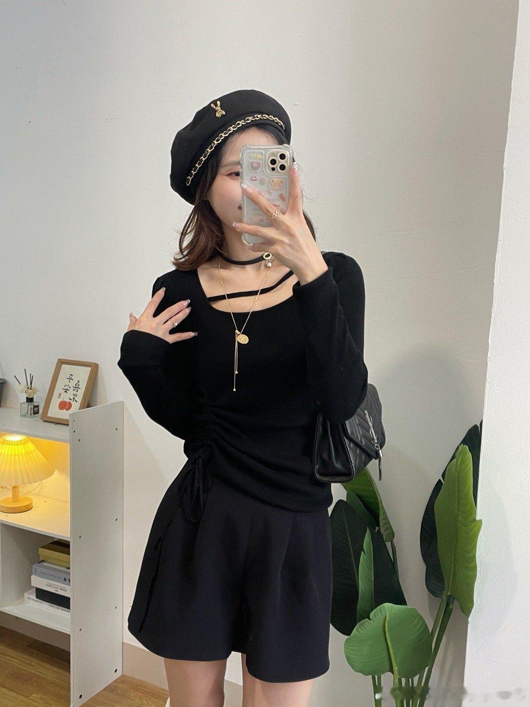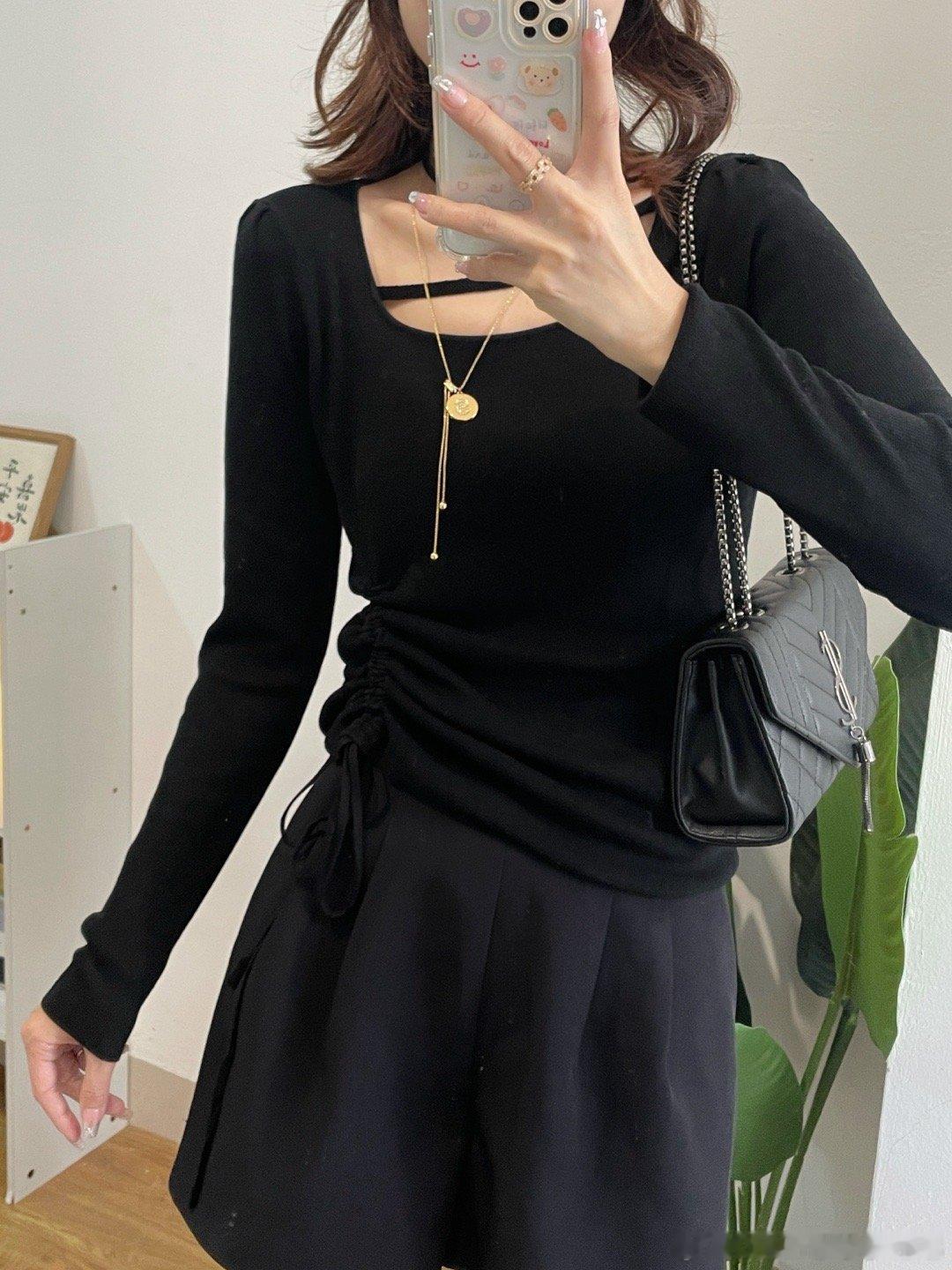 斜杆保暖针织衫上衣,下摆那边是有一个抽绳设计的!不管是扎进去穿还是抽绳拉扯一下穿都很好看。搭配店铺短裤一套很酷哦