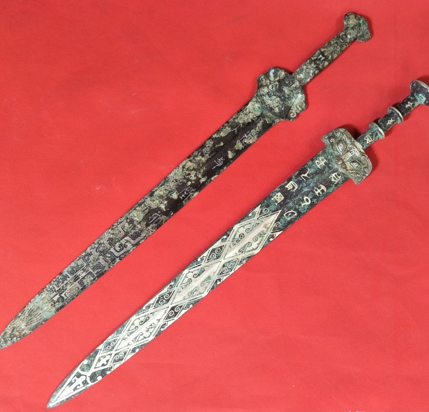您这宝剑造假造的也太次了,商周时期的宝剑,硬是给造成了汉代的样式,而且一闻一股猪血味,这明显是用来做旧的啊。