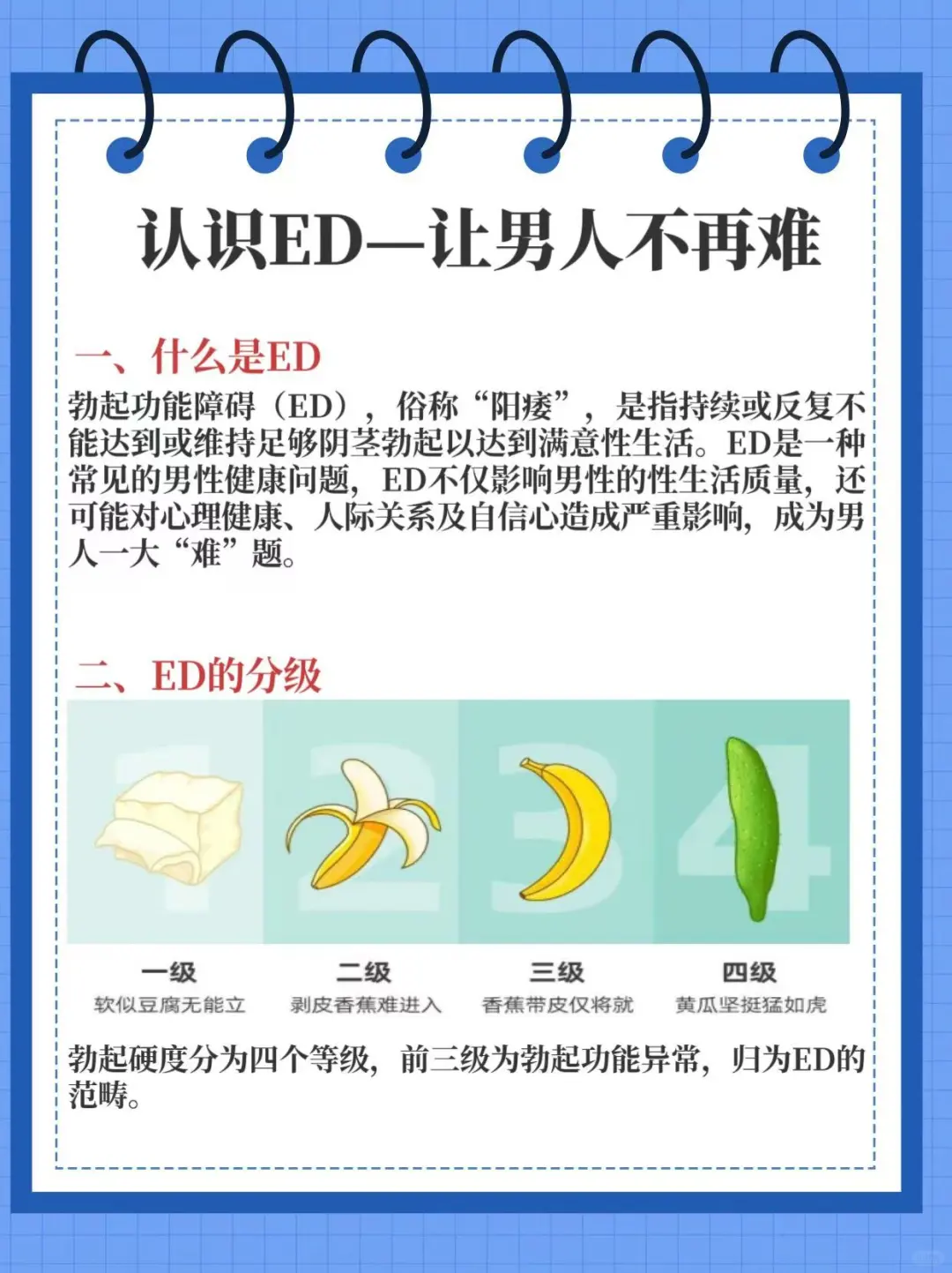勃起功能障碍(ED),俗称“阳痿”,是指持续或反复不能达到或维持足够阴茎勃起以达到满意性生活。ED是一种常见的男性健康问题,ED不仅影响男性的性生活质量,还可能对心理健康、人际关系及自信心造成严重影响,成为男人一大“难”题。