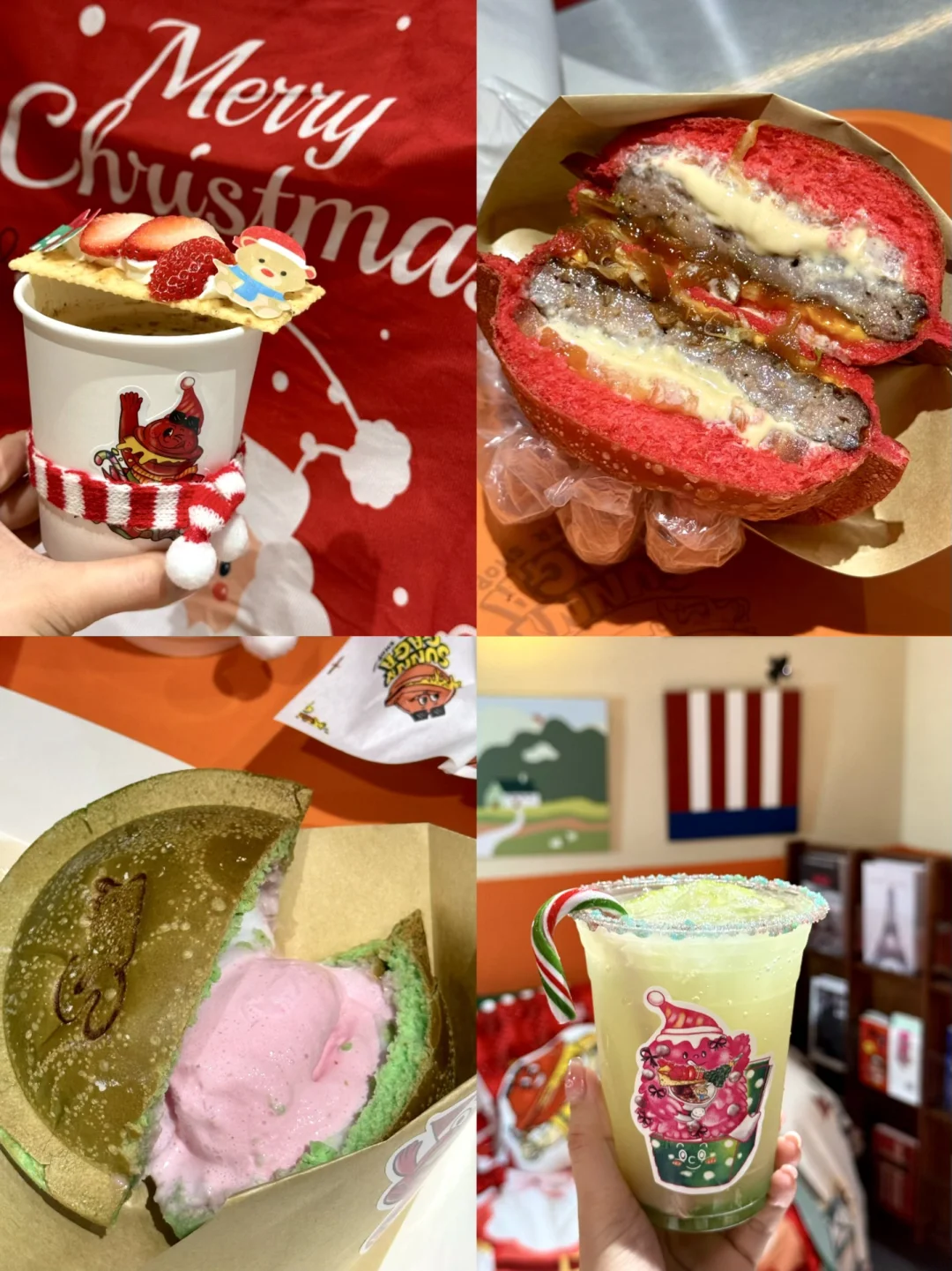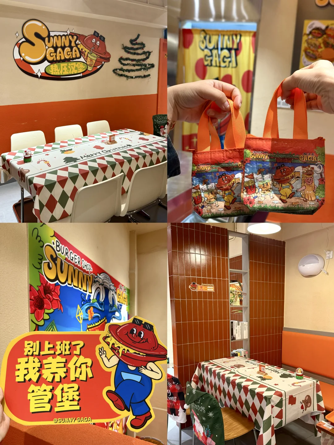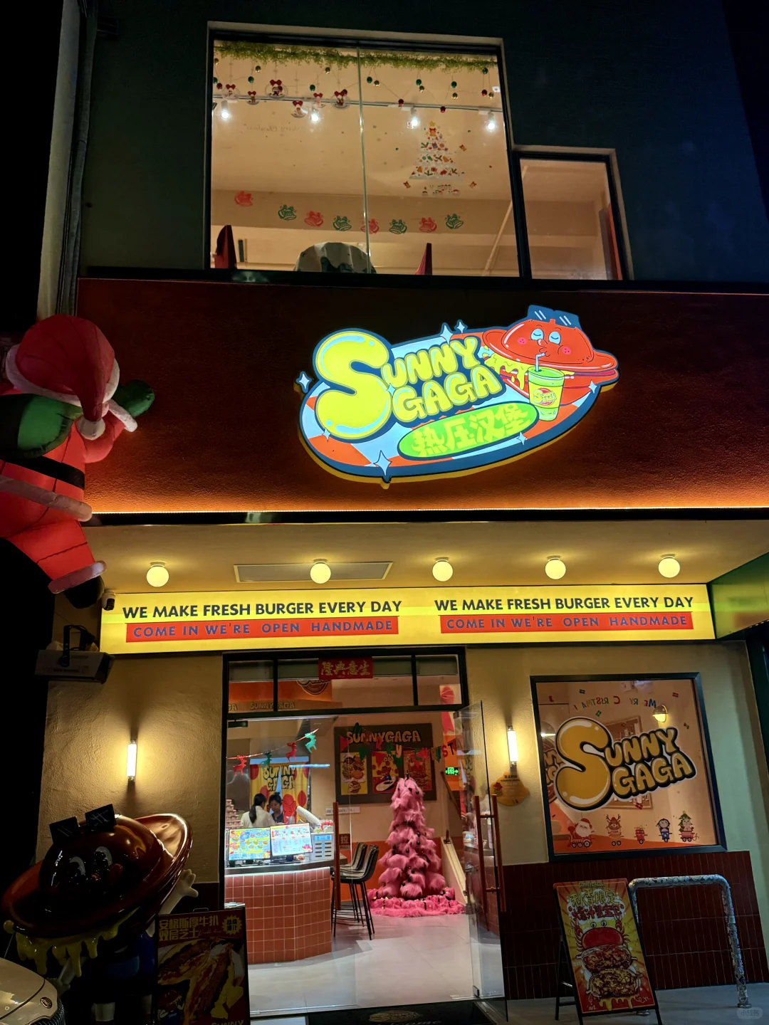 · 🔔啊啊啊!这里也太有圣诞氛围感了! 📷每一处都可可爱爱滴~出片率💯 · 🍔热压汉堡造型好Q,里面满满都是料 😋趁热一口下去 口感很是丰富 🥹她家的冰包系列也很棒~里面是🍧冰淇淋,冰火两重天无敌了!! · 🎄现在店铺满满都是圣诞的气息… ❄️❄️❄️门口还有有下雪哟! 🥰快约上小姐妹来拍照吧~ · 📍Sunny GaGa热压汉堡(安宁路) 🈺8:30~21:30 ·