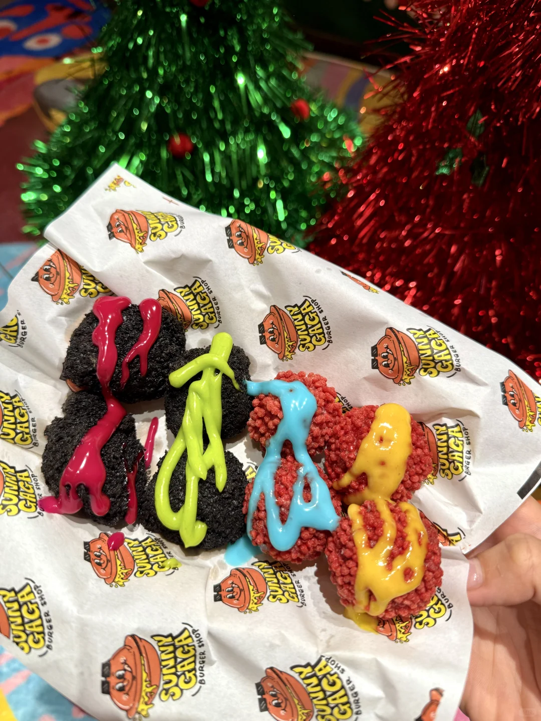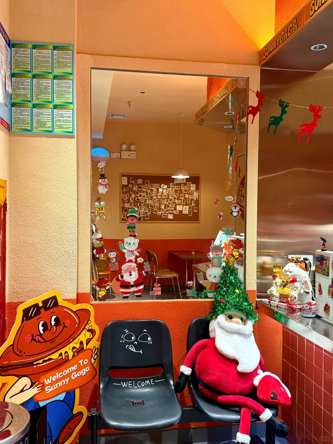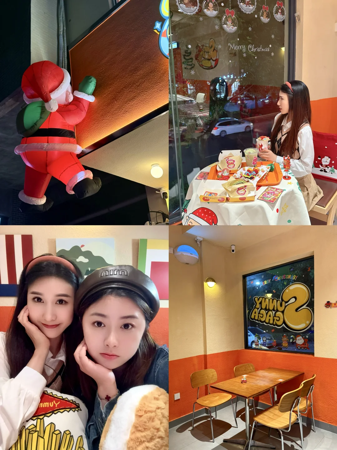 · 🔔啊啊啊!这里也太有圣诞氛围感了! 📷每一处都可可爱爱滴~出片率💯 · 🍔热压汉堡造型好Q,里面满满都是料 😋趁热一口下去 口感很是丰富 🥹她家的冰包系列也很棒~里面是🍧冰淇淋,冰火两重天无敌了!! · 🎄现在店铺满满都是圣诞的气息… ❄️❄️❄️门口还有有下雪哟! 🥰快约上小姐妹来拍照吧~ · 📍Sunny GaGa热压汉堡(安宁路) 🈺8:30~21:30 ·