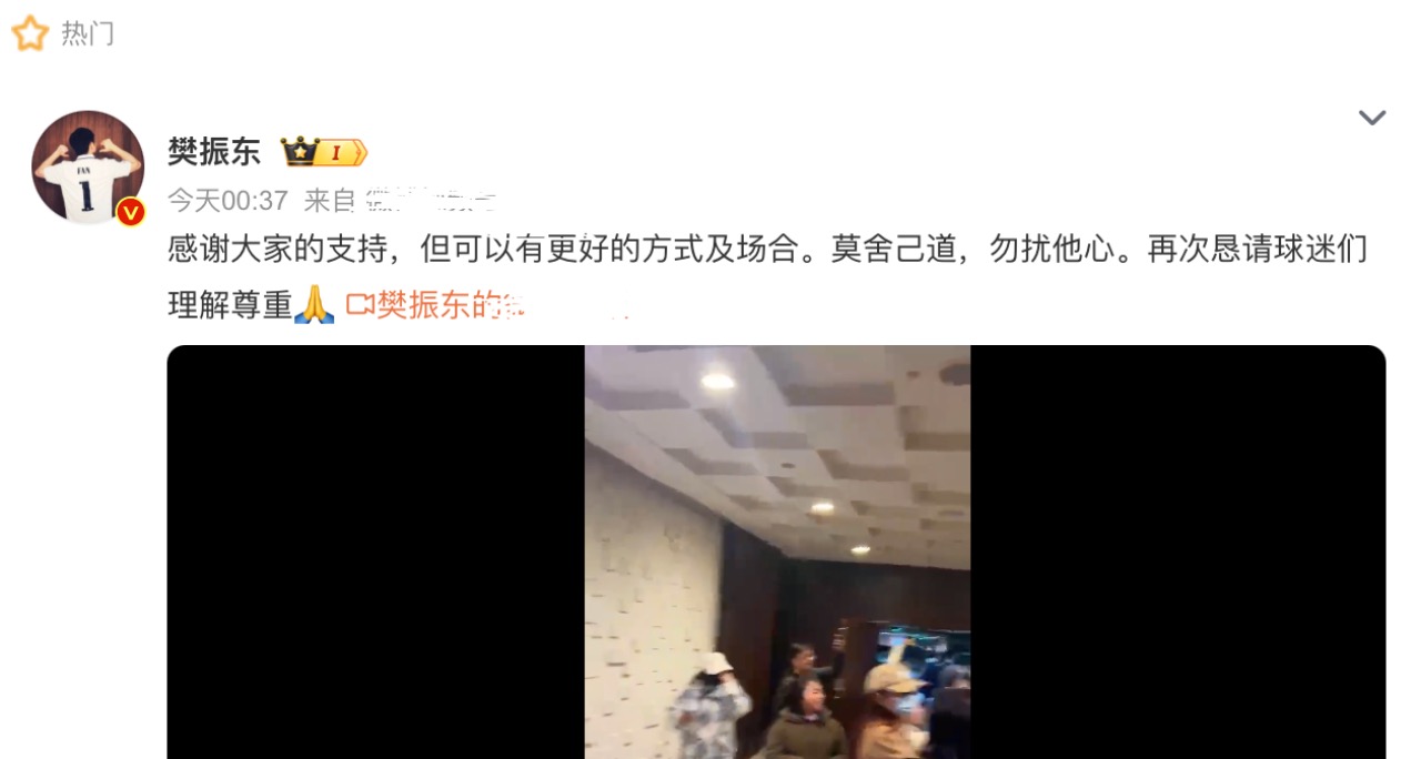 最终樊振东只能亲自发声,希望球迷们给一点理解和尊重,具体是说:“感谢大家的支持,但可以有更好的方式及场合。莫舍己道,勿扰他心。再次恳请球迷们理解尊重。” 这一类现象就是饭圈文化,并不是球迷行为,真正的球迷会考虑运动员本人的感受,支持运动员也不可以是以围堵、骚扰的方式。过往樊振东遭遇过最离谱的骚扰事件是被饭圈粉丝非法入侵酒店,个人隐私权被侵犯,当时樊振东直接报警处理,事情闹得很大。