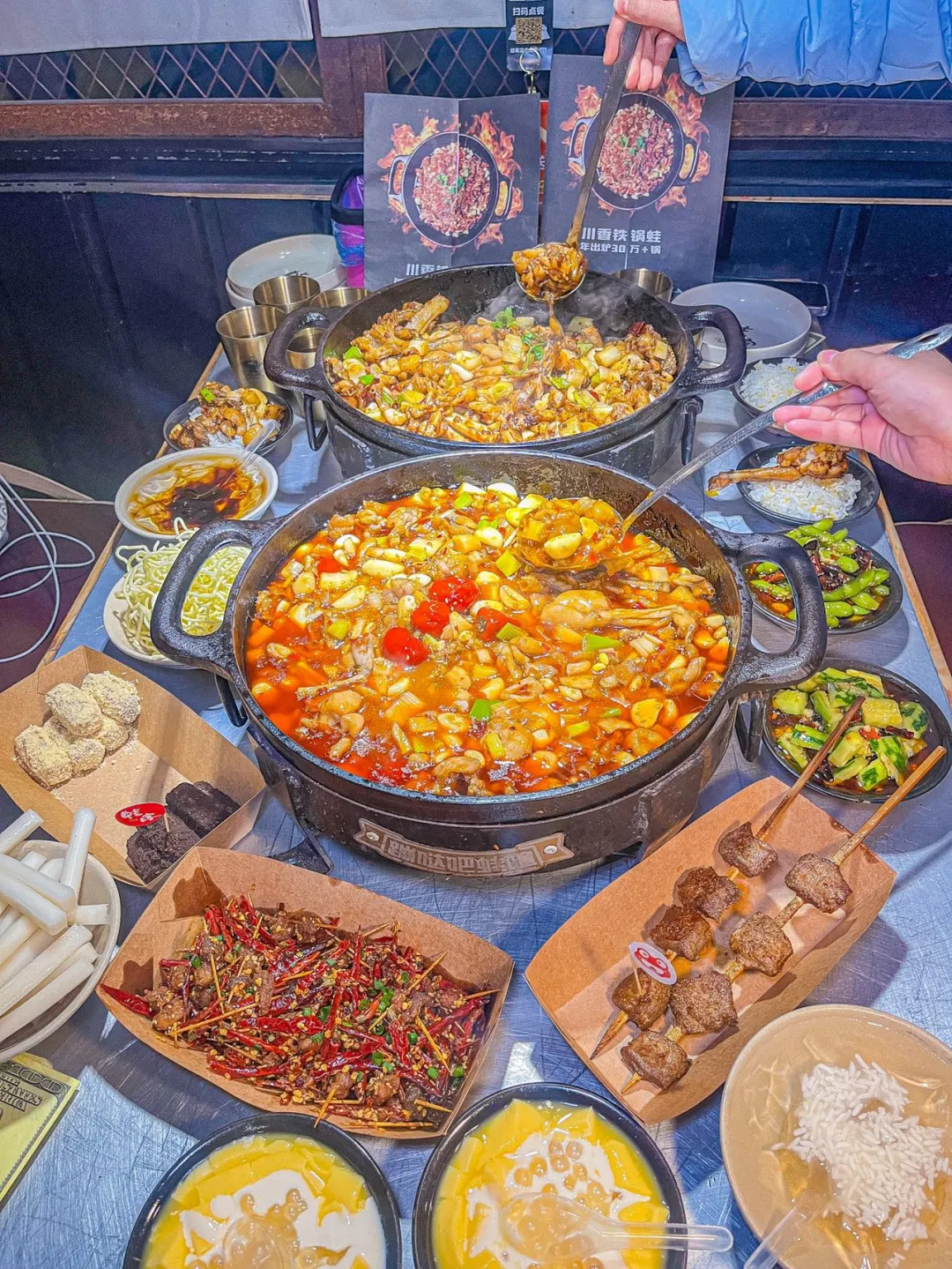 谁懂这一锅 香辣牛蛙的含金量!! 到了冬天 dna会自动苏醒 比起吃漂亮饭 现在更喜欢吃 锅气满满的炭火铁锅牛蛙🤩 整体量很大满满一锅 全是牛蛙 加上干煸藕丝配菜打底 实在太好吃了啊喂 一口一个蛙腿肉肉质饱满 看的出来hin 新鲜 不愧是开了十年的老年 还有我喜欢的烤牛蛙 烤牛油🧈 而且吃不腻比大鱼大肉还要香🥹 吃完蛙后下入热干面 裹上浓郁的酱汁简直太满足了🍜