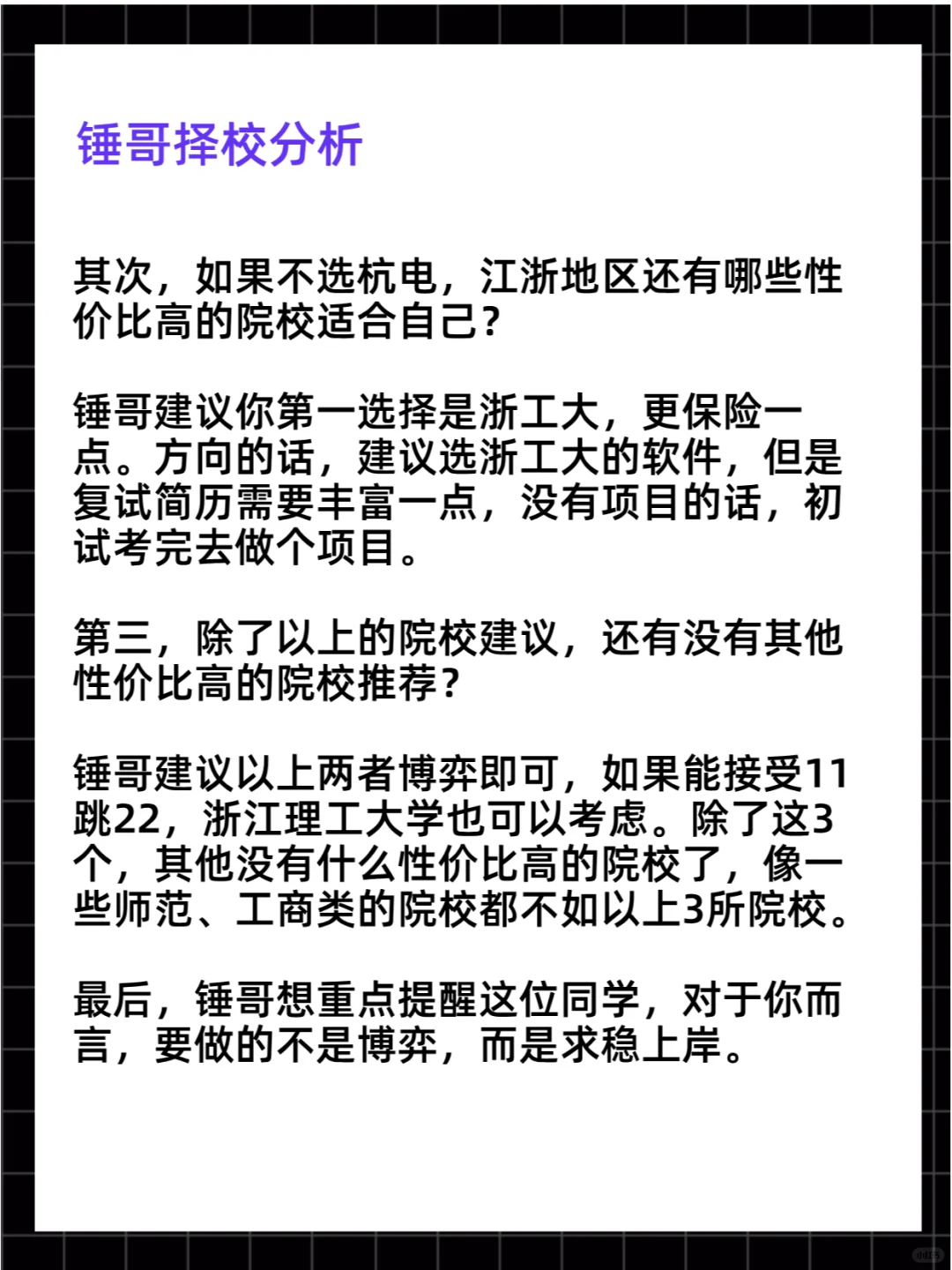 这是一位二本跨考学生的择校案例。25考研是一战,目标330分,倾向江浙地区,来看看大锤学长给他什么建议?考研 计算机考研 考研择校 择校规划
