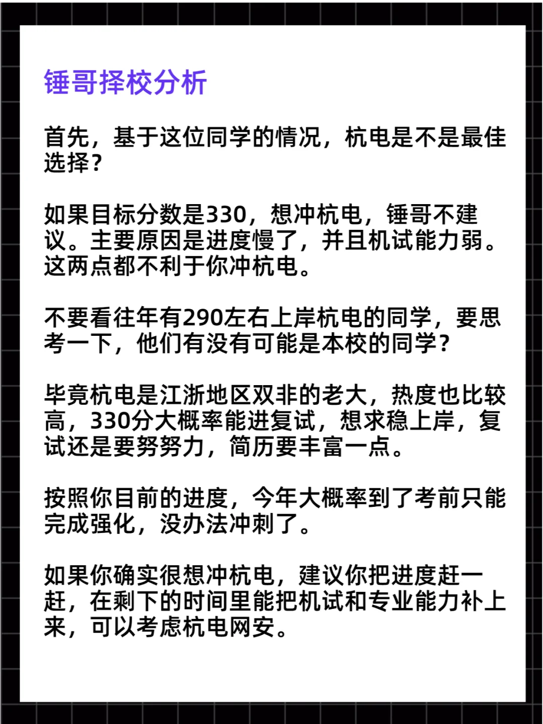 跨考生、进度慢,目标330分想冲杭电有戏吗