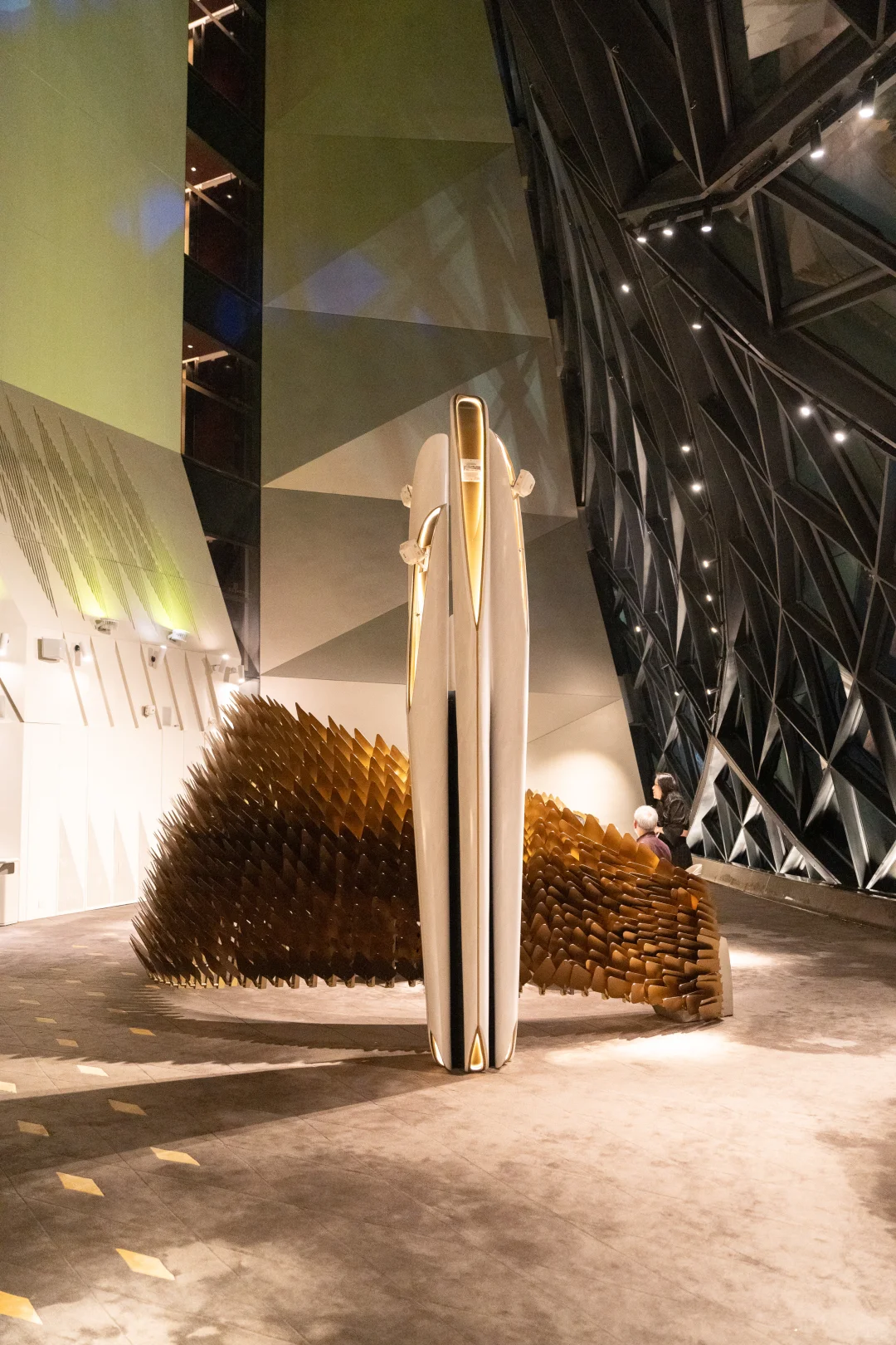 我被邀请到澳门摩珀斯(Morpheus)酒店,体验一场名为「An Artful Palate」的限时晚宴。摩珀斯由已故建筑大师Zaha Hadid设计,挑高的大堂与流畅曲线令人震撼(图2),阳光穿透天花,宛如身处未来美术馆。