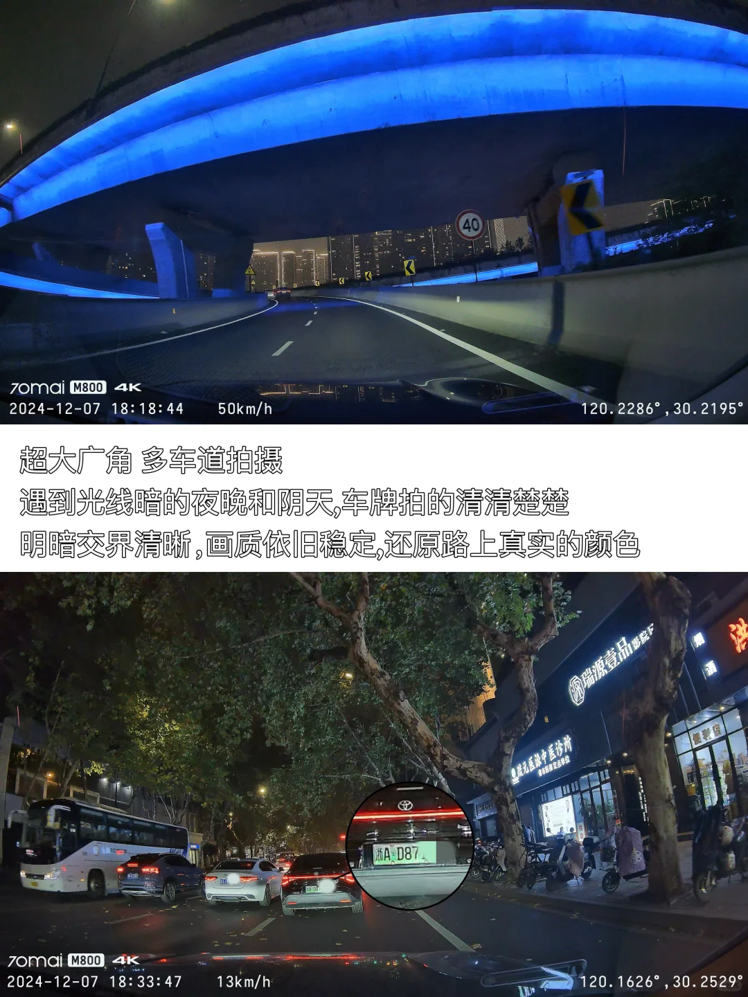 🚘之前一直担心原本的行车记录仪有时候拍不清楚其他车的数字🔢,关键时刻起不到作用,M800在暗光,微光,全黑无光的条件下也可以做到全彩拍摄记录,遇到大雾天,还有除雾模式,这回看到70迈带给我的惊喜,心里可算踏实了~
