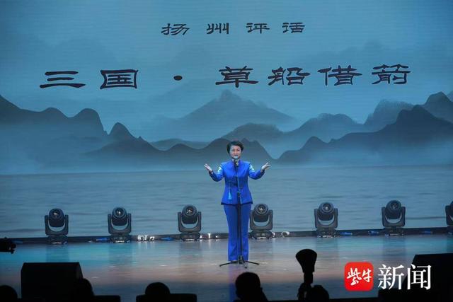 南北文化融合共生。无锡市歌舞剧院的舞蹈《能不忆江南》团扇摇曳、舞姿轻盈,勾勒出一幅幅水墨丹青,带领大家穿越千年,让观众沉醉于那柔情似水的江南风光;扬州评话《三国·草船借箭》妙语连珠,节奏引人入胜,生动鲜活地诠释出经典故事长盛不衰的魅力;响水县淮海剧团的淮海小戏《方向盘》构思奇巧,独具创意,演员对答严谨幽默,表演亦庄亦谐,引得台下观众笑声不断。经典与现代交相辉映。盱眙县黄梅戏剧团《天仙配》选段、江苏常州市锡剧院《珍珠塔·赠塔》、江苏省戏剧学院《梨花颂》表演者配合默契,唱念做打间尽显经典戏曲的典雅精致;无锡市歌舞剧院的歌舞表演《我奋斗我幸福》将全场气氛燃至顶点,昂扬向上的歌词与朝气逢勃的舞姿引发观众强烈时代共鸣。