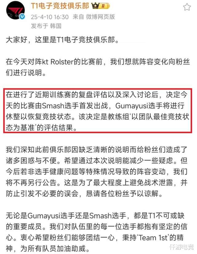 宙斯不在,是没有办法重走来时路,规避掉这个问题的,让Guma继续首发,那是整个队伍的阵痛期,替补那就是选手阵痛期,从理性上看,教练组在追求成绩上此举也是没有办法说的,从感性上,许多比较念旧的团粉和Guma粉觉得Guma为队伍效力这么久,对t1这支队伍忠诚(就连管理层都这么认为),多少应该给一点地位保障。