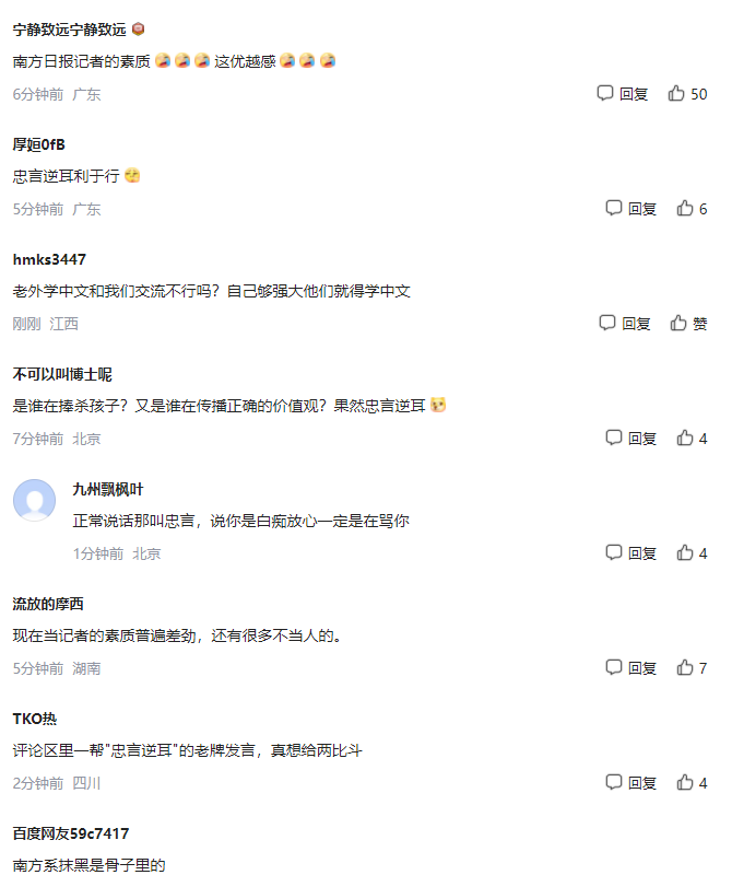 这个评论一石激起千层浪,朱某龙引发网友的声讨。同一时间,南方日报也发表声明:“集团一名体育记者违规私自参加网络连线节目,发表涉我奥运健儿的错误言论。集团对此高度重视,迅速组织开展调查,将根据事实对相关责任人依规依纪严肃处理。”