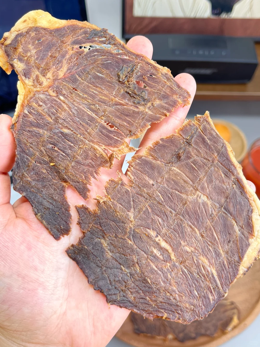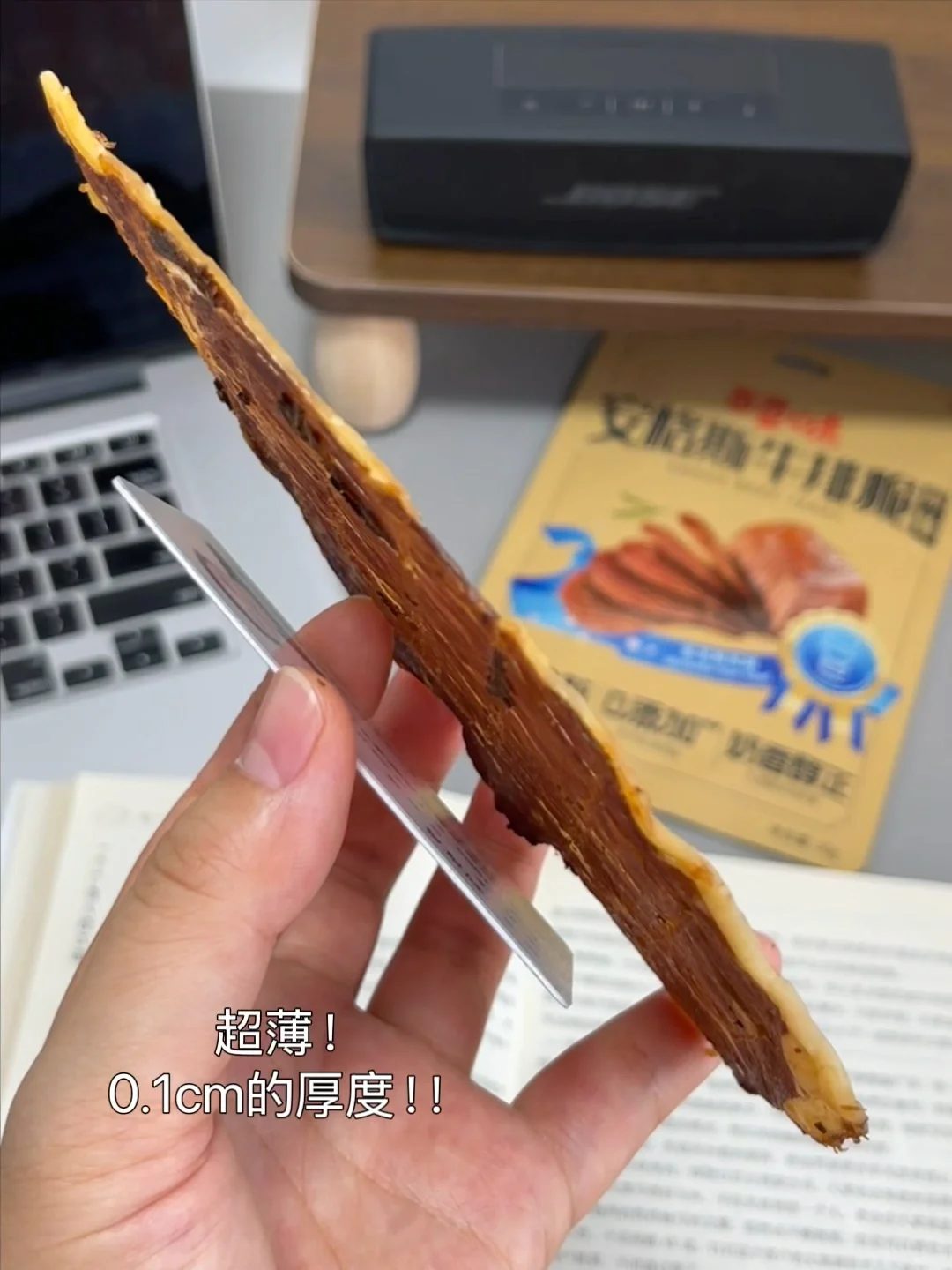 好吃的牛肉干有很多,但这种只有0.1cm厚度,薄得像纸的牛肉干绝对要认准百草味安格斯牛排脆,我敢说99%的人都没吃过!!