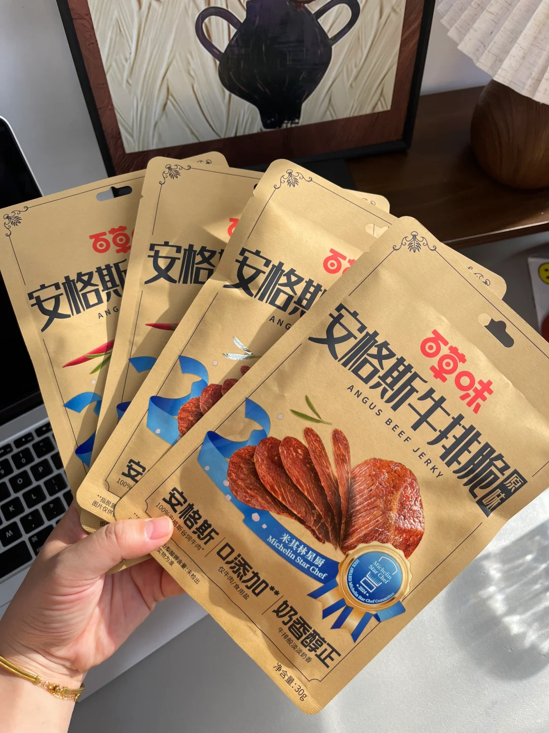 最近跟风下单了百草味的安格斯牛排脆,绝了!!