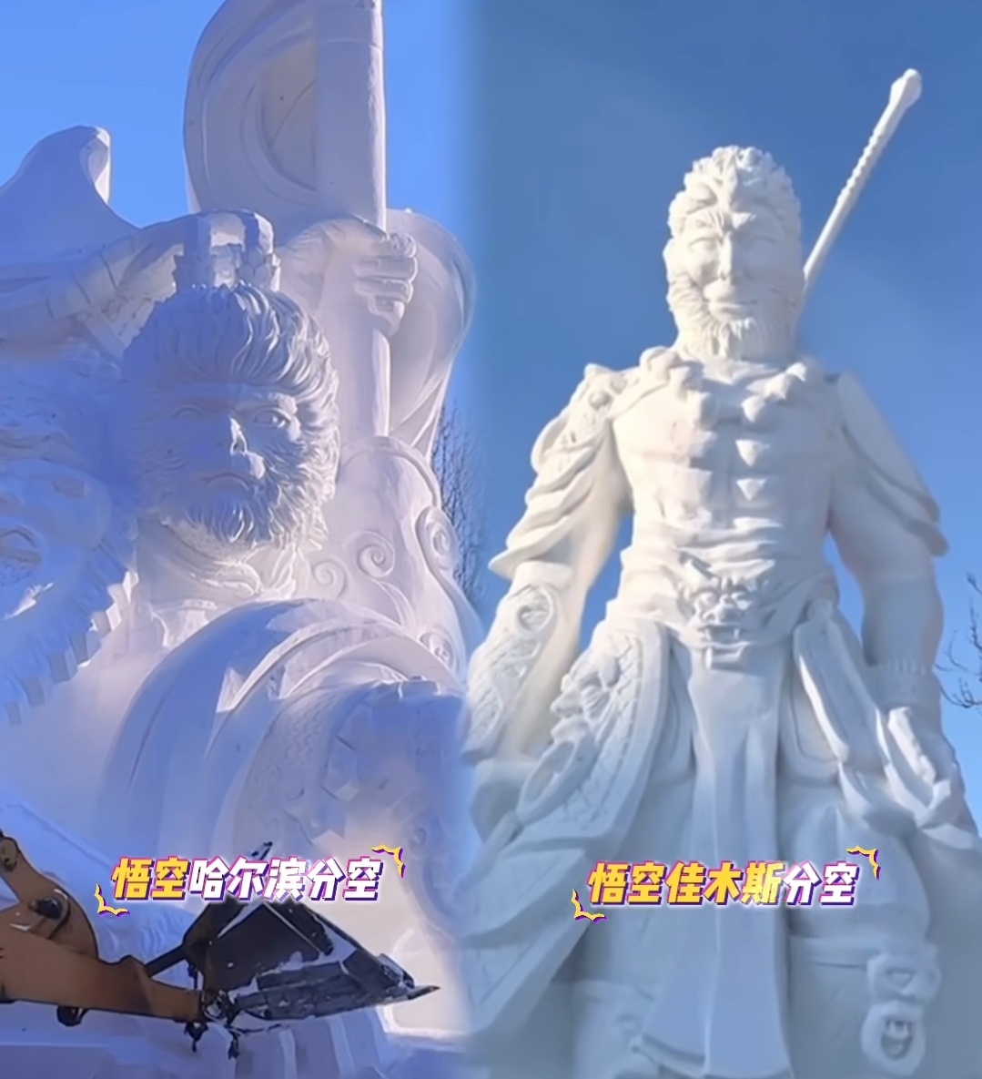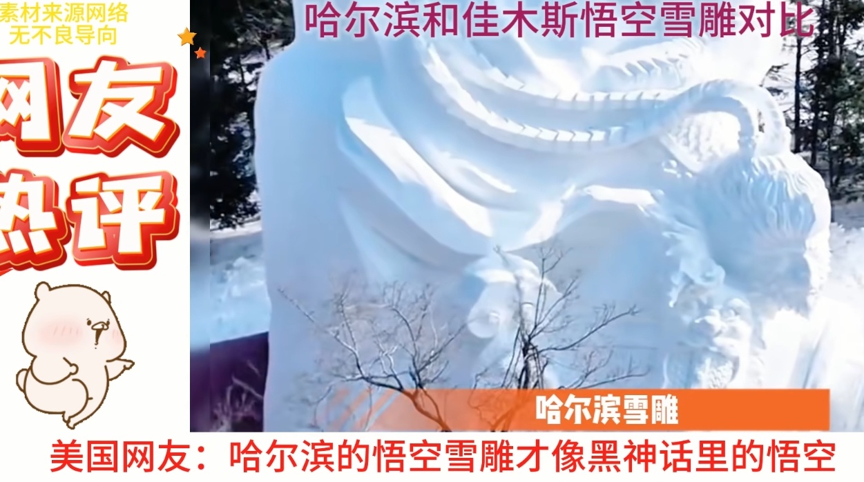 佳木斯输了 最近哈尔滨和黑龙江佳木斯相继做了《 黑神话悟空 》的雪雕,但双方的颜值差距引发网友热议。