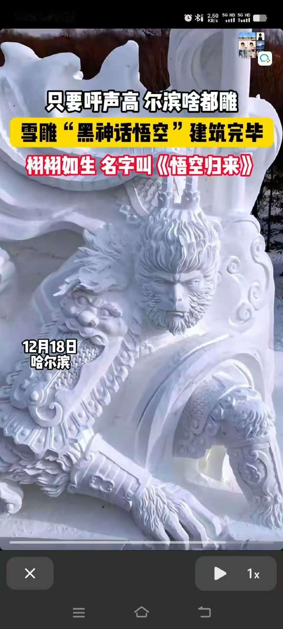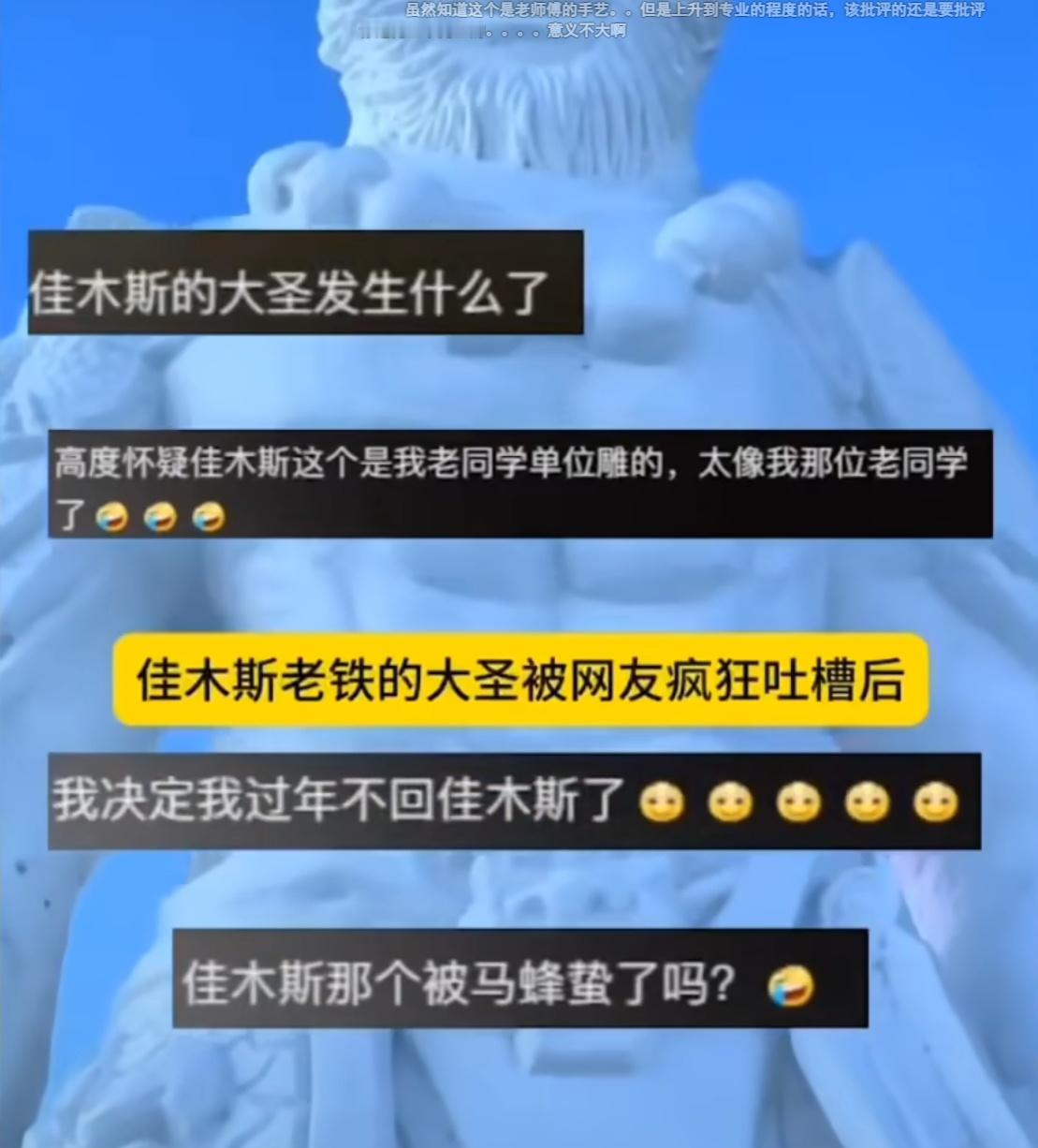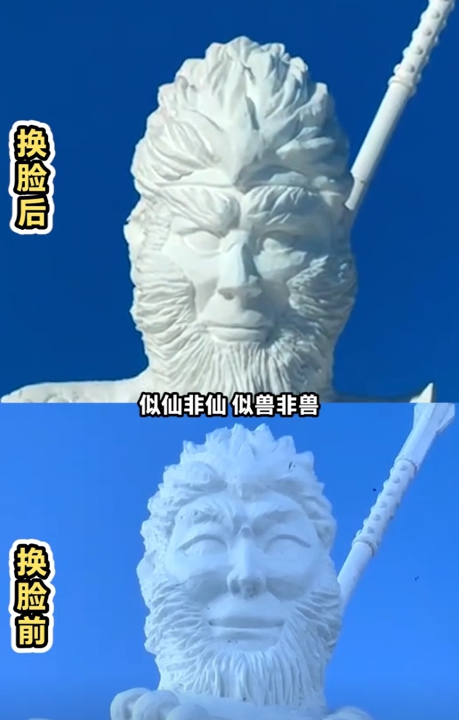 *佳木斯悟空雪雕被网友调侃颜值后连夜修脸,目前已整改完毕(见图10)