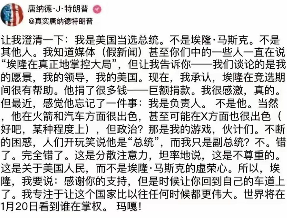 马斯克可能还没有意识到严重性,特朗普都开始澄清了。这可能就叫“功高盖主”吧。