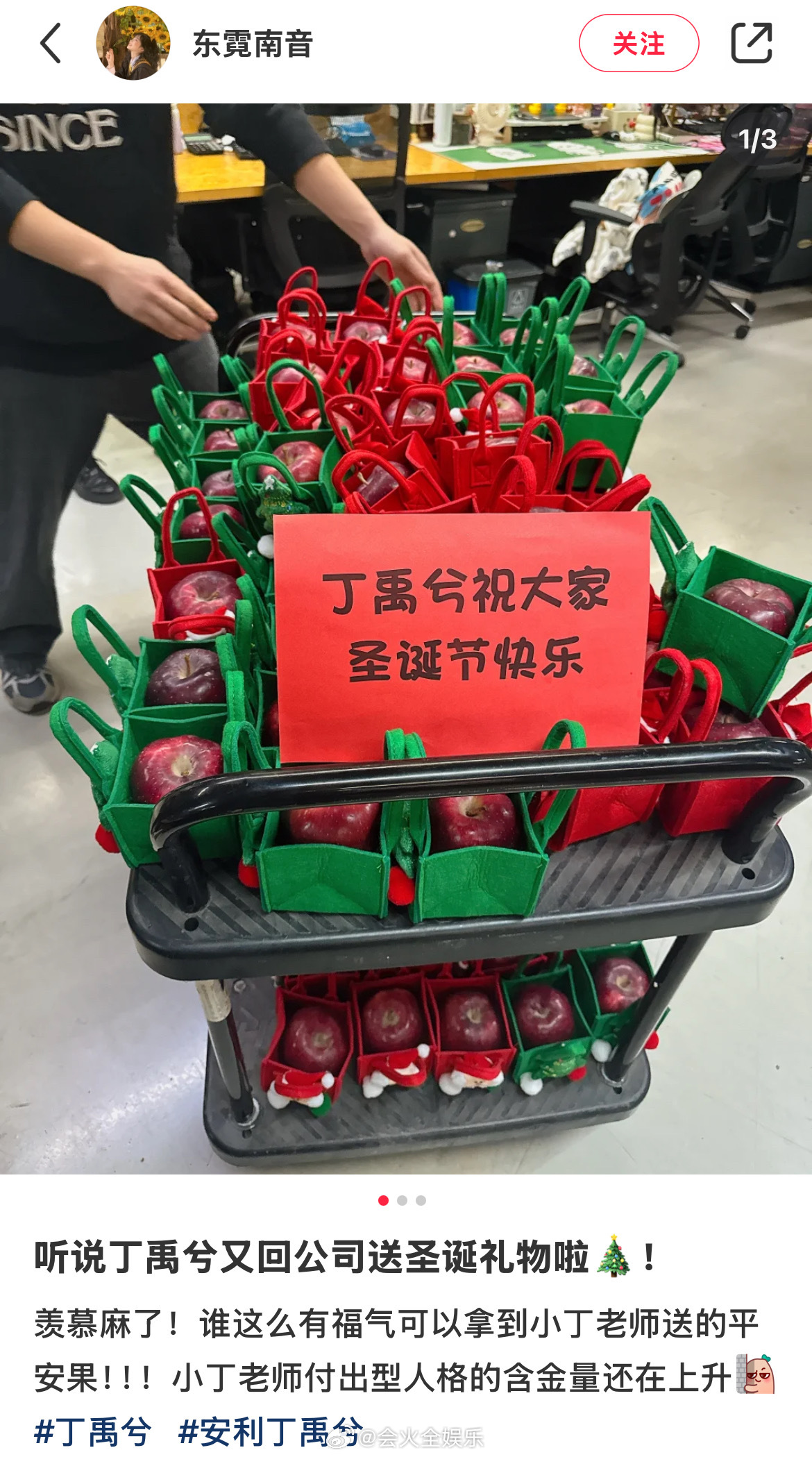 丁禹兮给工作人员送圣诞礼物 跟丁禹兮做同事太幸福😭