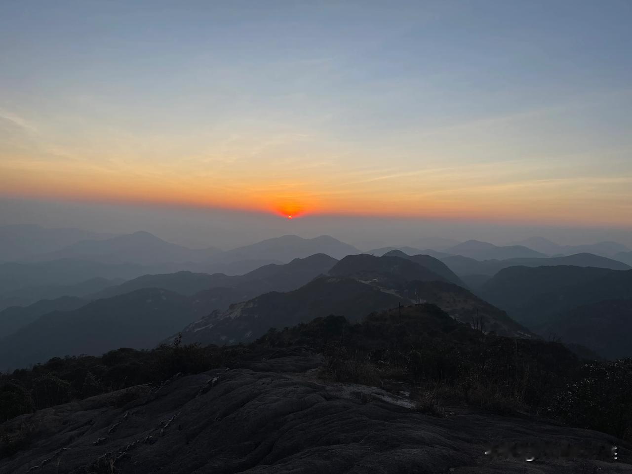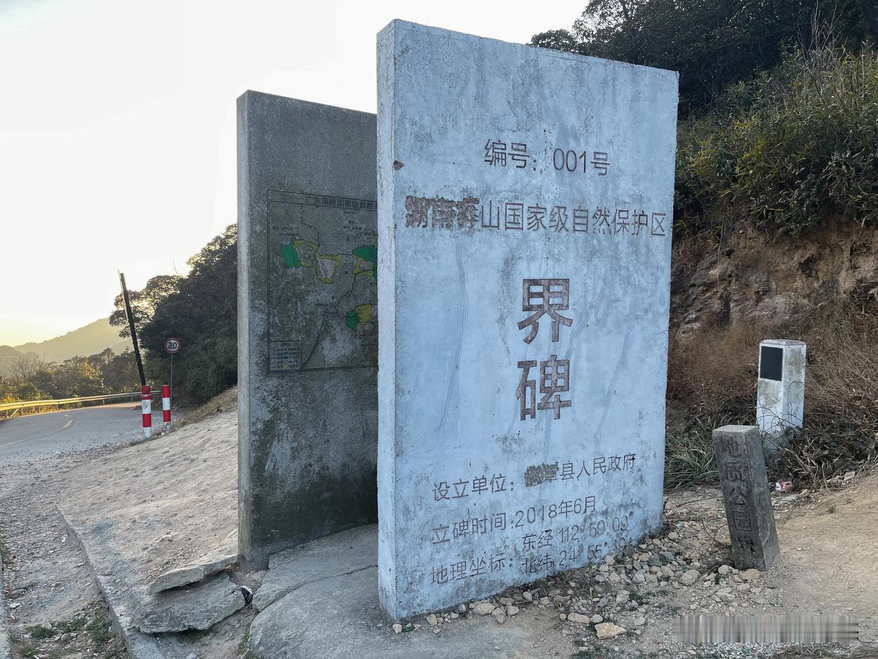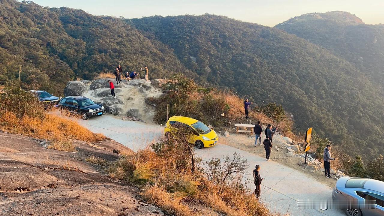 离开老鼠夹古道后,又马不停蹄地赶去石坑崆。 石坑崆俗称的广东第一峰,位于南岭国家级自然保护区内,海拔1902米。上山沿途共有四个景区:天龙饮水景区、天门画廊景区、天星桥景区(仙女潭)、秤架大河谷、秤架古道。 从景区入口驾车进入,走走停停一个多小时到达山顶的湘粤交界处。黄昏时分,尽管可见度很低,仍不少游客在等待日落。
