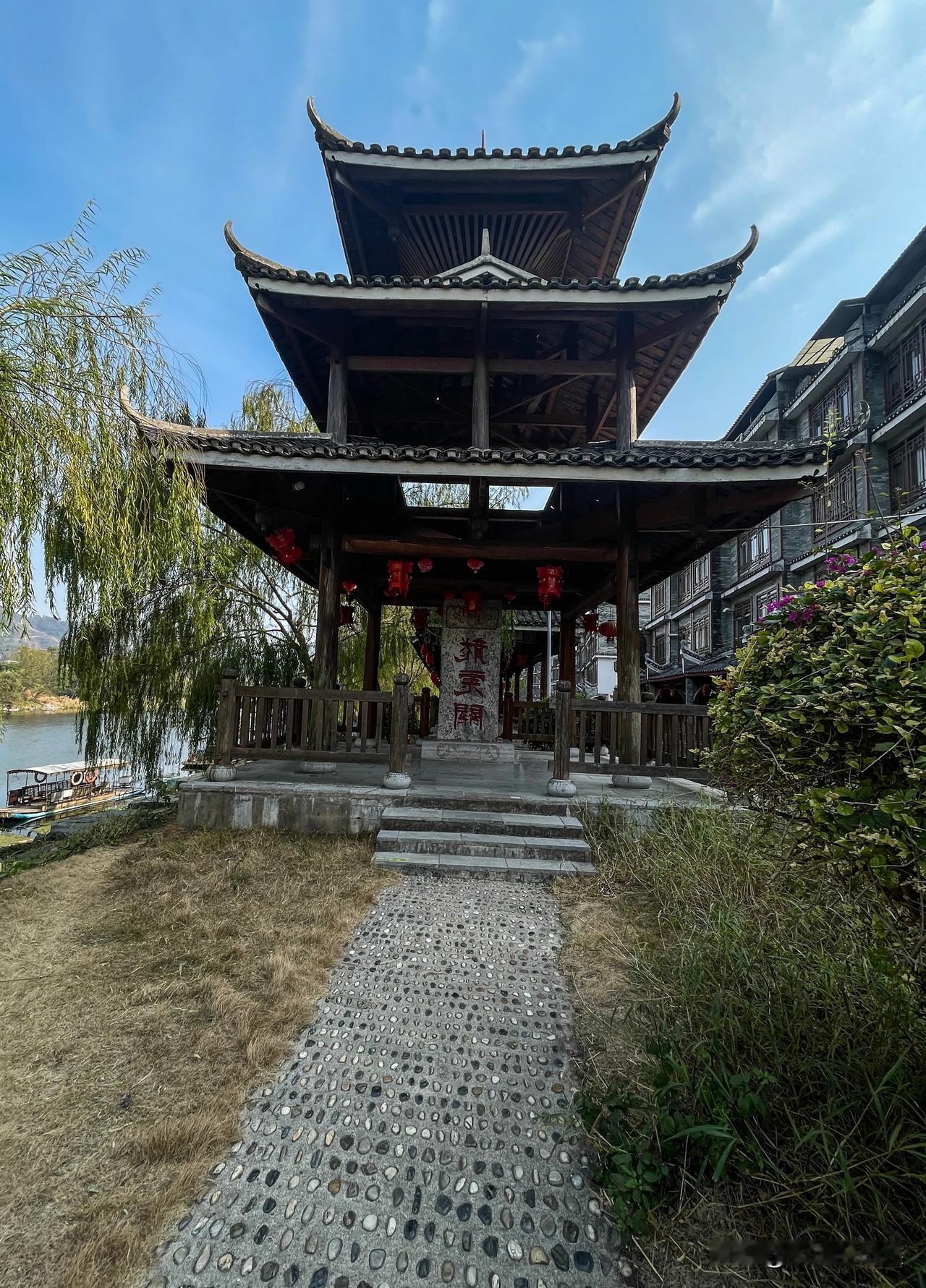 广西恭城龙虎关与湖南光华相邻,古时兵家争夺之地。古镇经过几年的彻底改造,现已发展成为悠闲地旅游景点。修建在河岸瑶族特色的风雨长廊,一栋栋仿古建筑的映衬下,有些儿像水城韵味。 镇内是一间间手制面作坊,手工制作的面条应该是龙虎镇的特色产业。