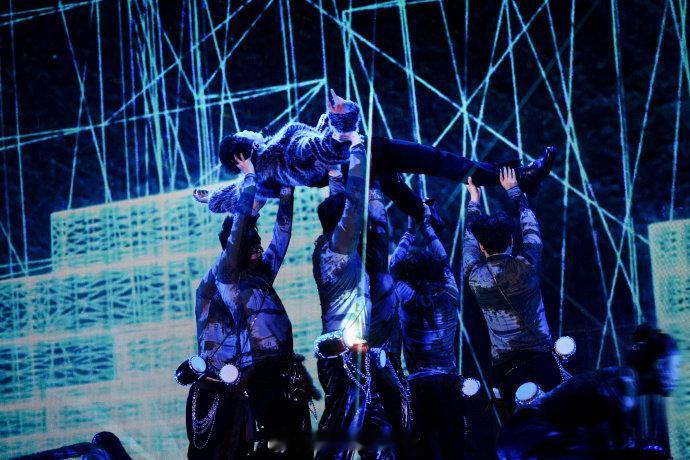 张艺兴开天舞台首秀 张艺兴打赛博腰鼓 舞台上的张艺兴,如同掌控赛博世界的王者