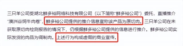除此之外,还有他们之前带货的“澳洲谷饲牛肉卷”也涉嫌虚假宣传,在没有经过检测报告确认以后,“三只羊”就开始了带货。