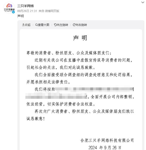 在沉默了接近一个月的时间以后,“三只羊”终于有了回应,表示会认真接受所有意见和处罚结果,事情到这里算是结束了。