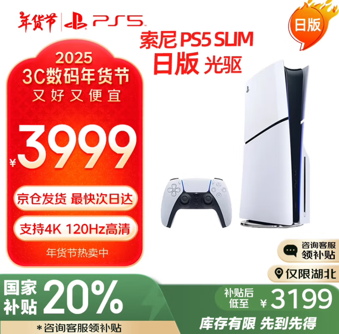 湖北省国家补贴类目中增加了PS5、Xbox Series X|S和Switch游戏主机,湖北区域用户可享游戏机国补礼遇,国家补贴 20%。