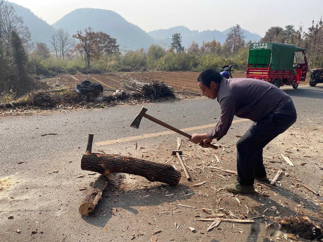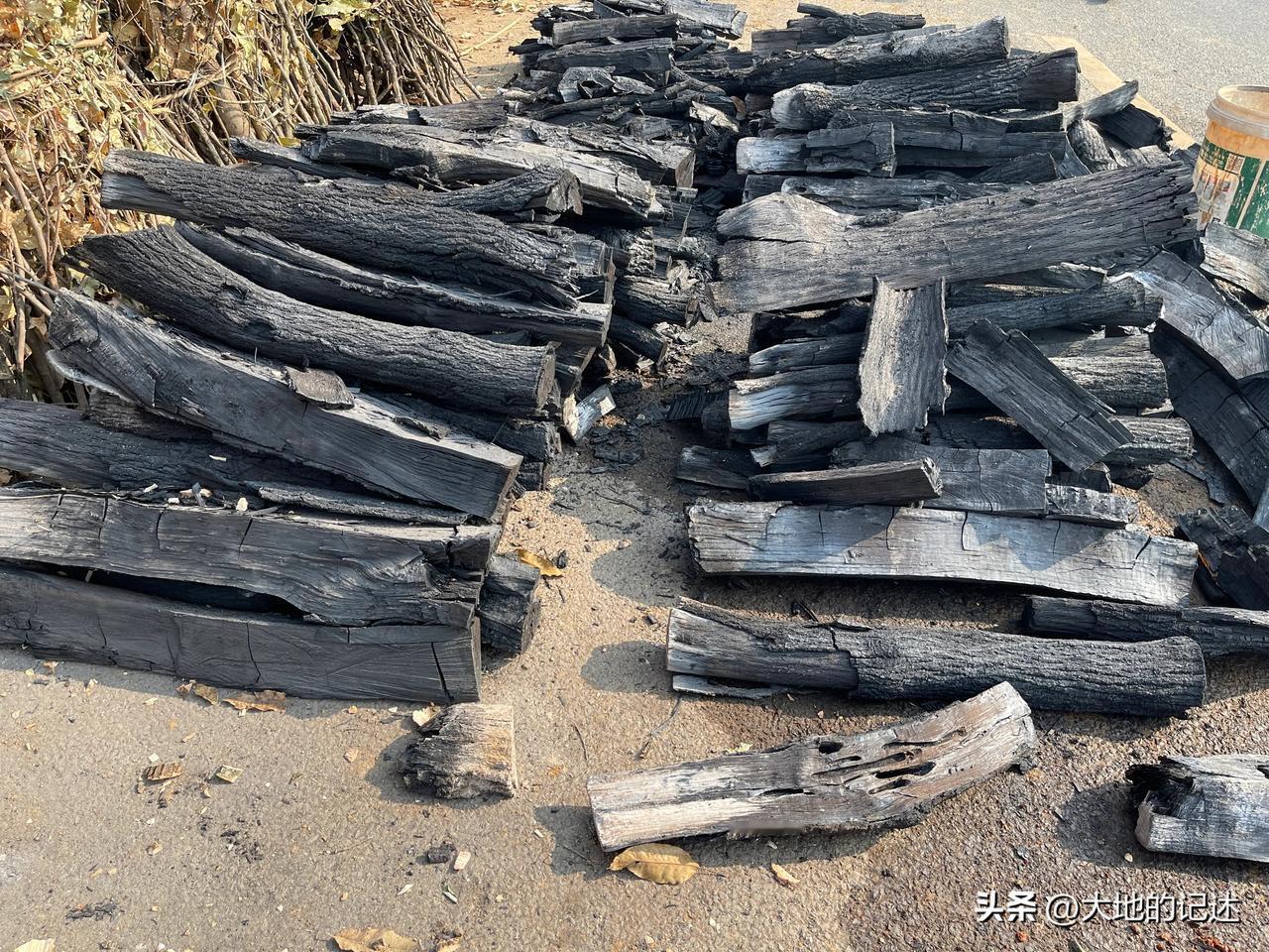 从湖南永州光华勾蓝瑶寨前去广西贺州富川福溪村途中,山坡下看到几个烧炭人。 村民说:烧炭的树木是祖先留下来的。烧炭的过程颇为漫长,烧3天冷却4天,一炉能烧出7至800斤炭。成品炭价格甚低,每百斤200多元。 闲时,村民们以夫妻形式组合进行烧炭,弥补一下家庭的负担。
