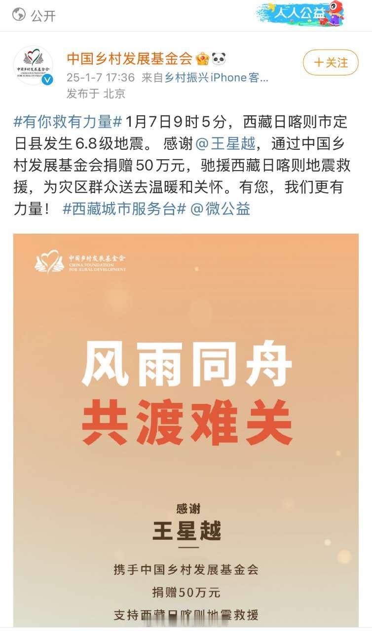 王星越捐赠驰援西藏灾区点滴善意,汇聚成爱的海洋,王星越捐赠驰援西藏灾区,为灾