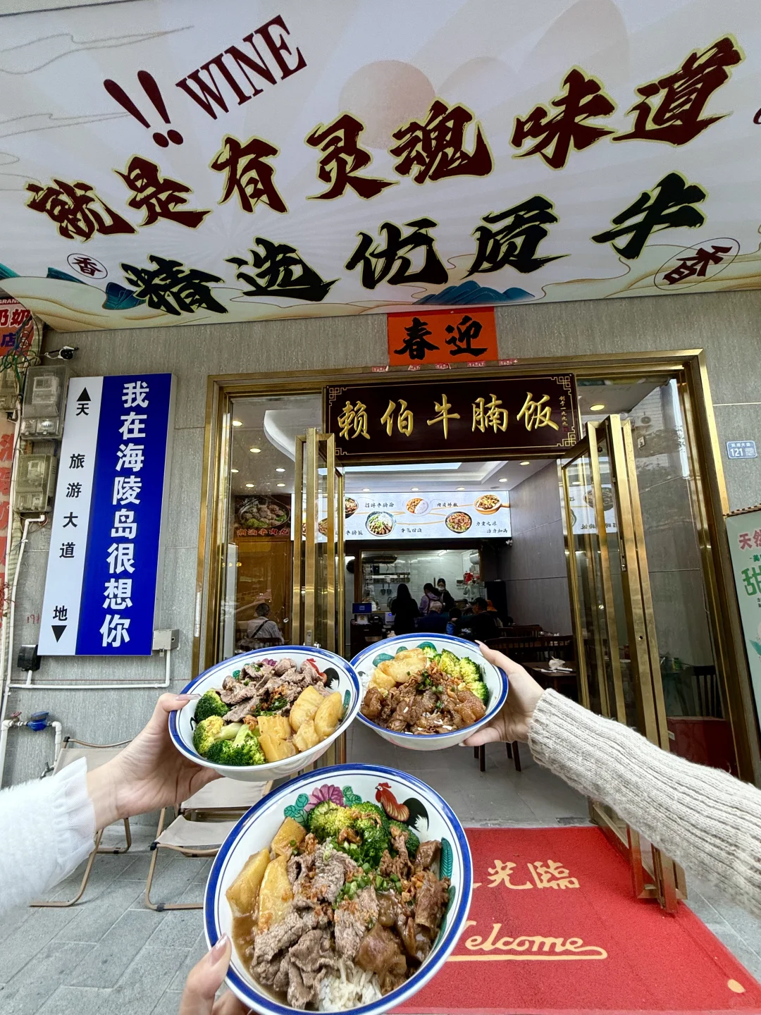 · 🔥这里的牛腩饭,本地人都无法拒绝 🤩刚端上来,就散发着诱人的香味 · 🉑牛腩分量很多,炖得软烂很入味 ✔️口感紧实,汤底浓郁鲜香,食欲🈵 · ✅还有牛腩面,牛腩面、牛肉饭.. 🥳拌着牛腩汁吃是真的ju满足! 🐂还有他家的牛肉丸汤也好好吃哟 · 📍赖伯牛腩饭(海陵岛店) 🈺11:00~22:00 ·