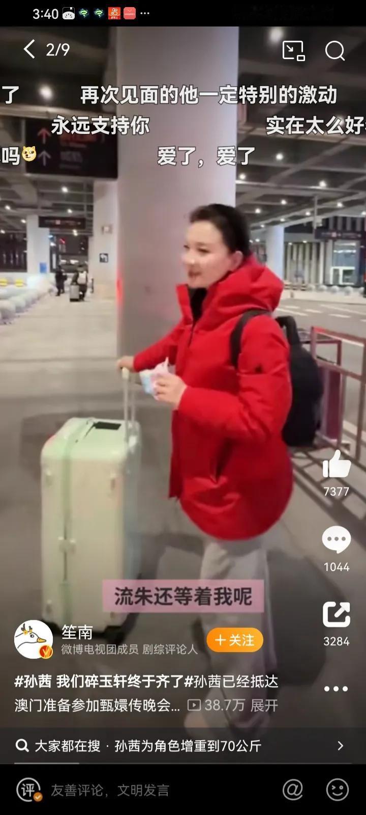 我们碎玉轩终于团聚了 孙茜已顺利抵达澳门,准备参与《甄嬛传》晚会的彩排!她最期待的就是与流朱的重逢,毕竟两人已有八九年未见。她感慨道:“我们碎玉轩终于团聚了。”谁能理解碎玉轩成员重聚的珍贵?真是满怀期待,连槿汐姑姑都想为此写一篇四百字的文章呢。