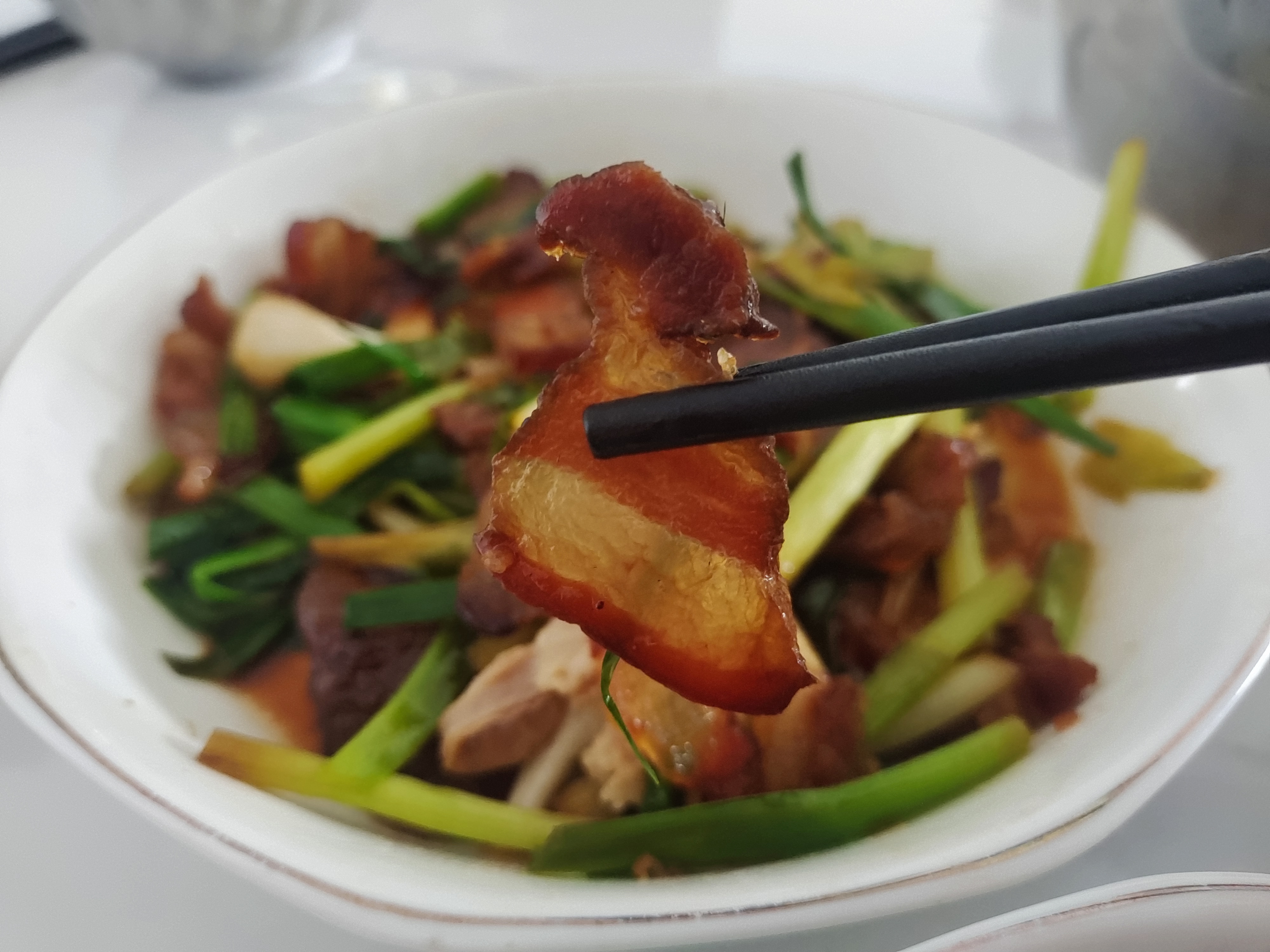 自己晒的酱油腊肉,晒了十天,今天终于对它下手了,炒了大蒜,晶莹剔透的,超级的香,超级下饭,后悔都做少了。明天出去看到有漂亮的五花肉,再买一点来做,你们都晒腊肉了吗?
