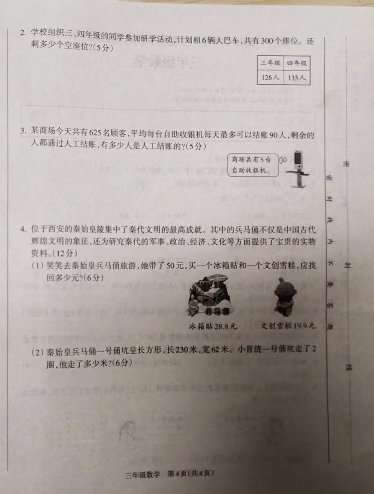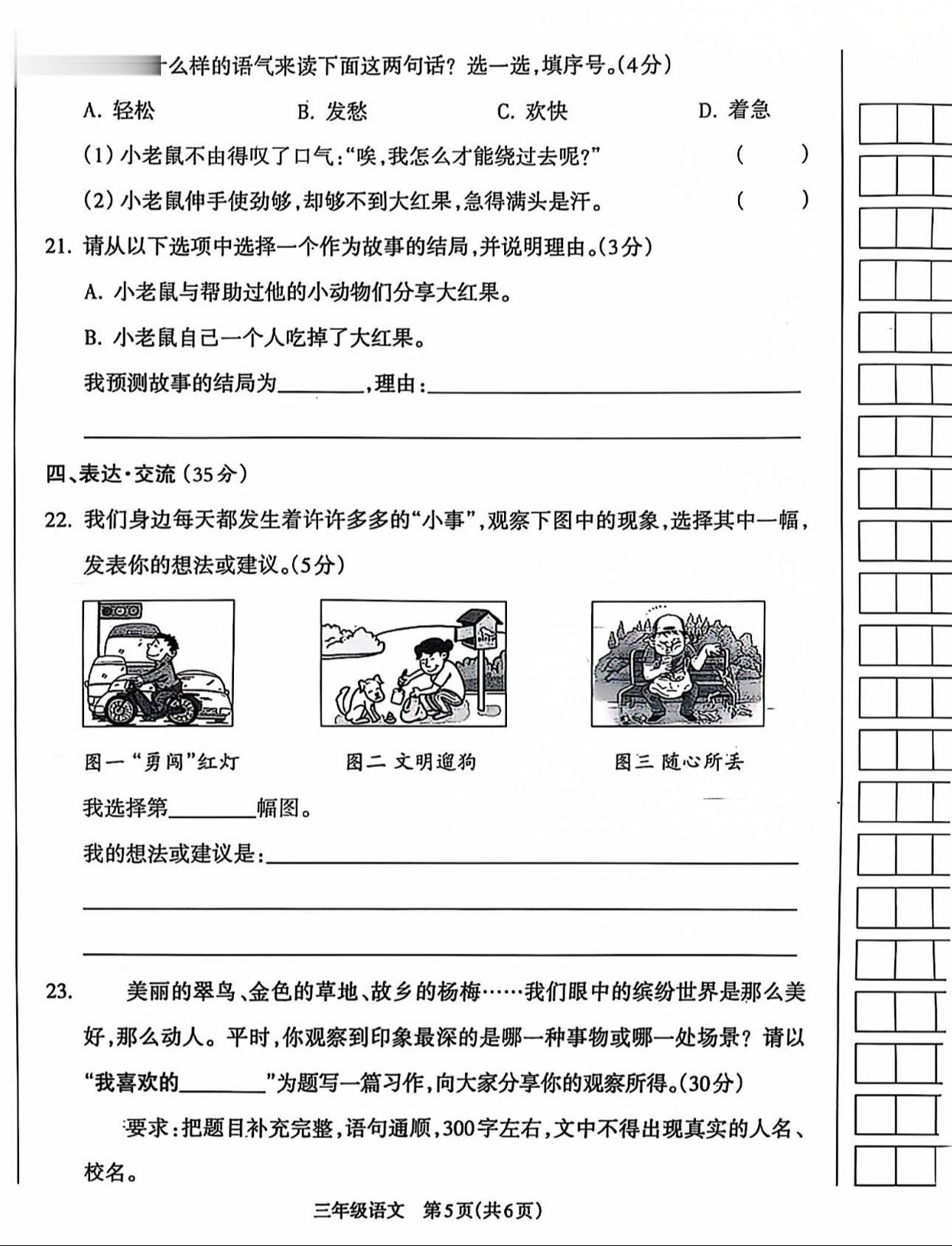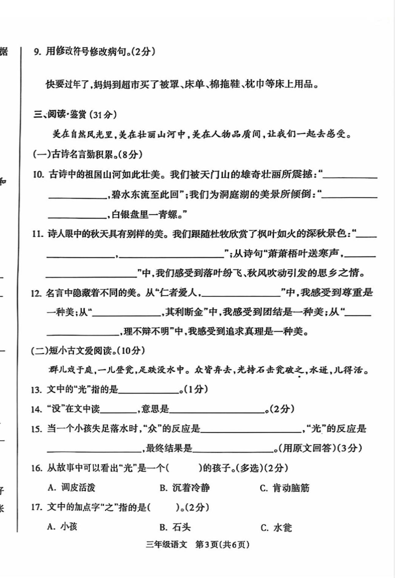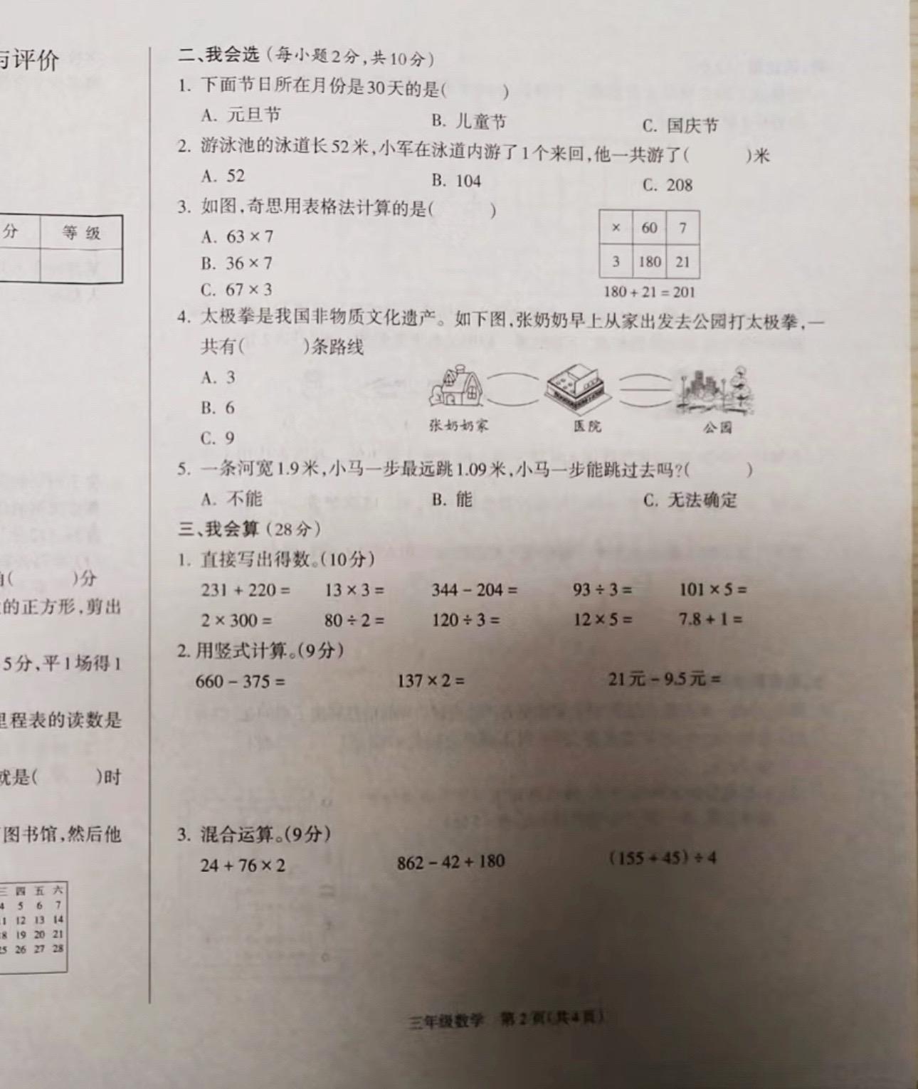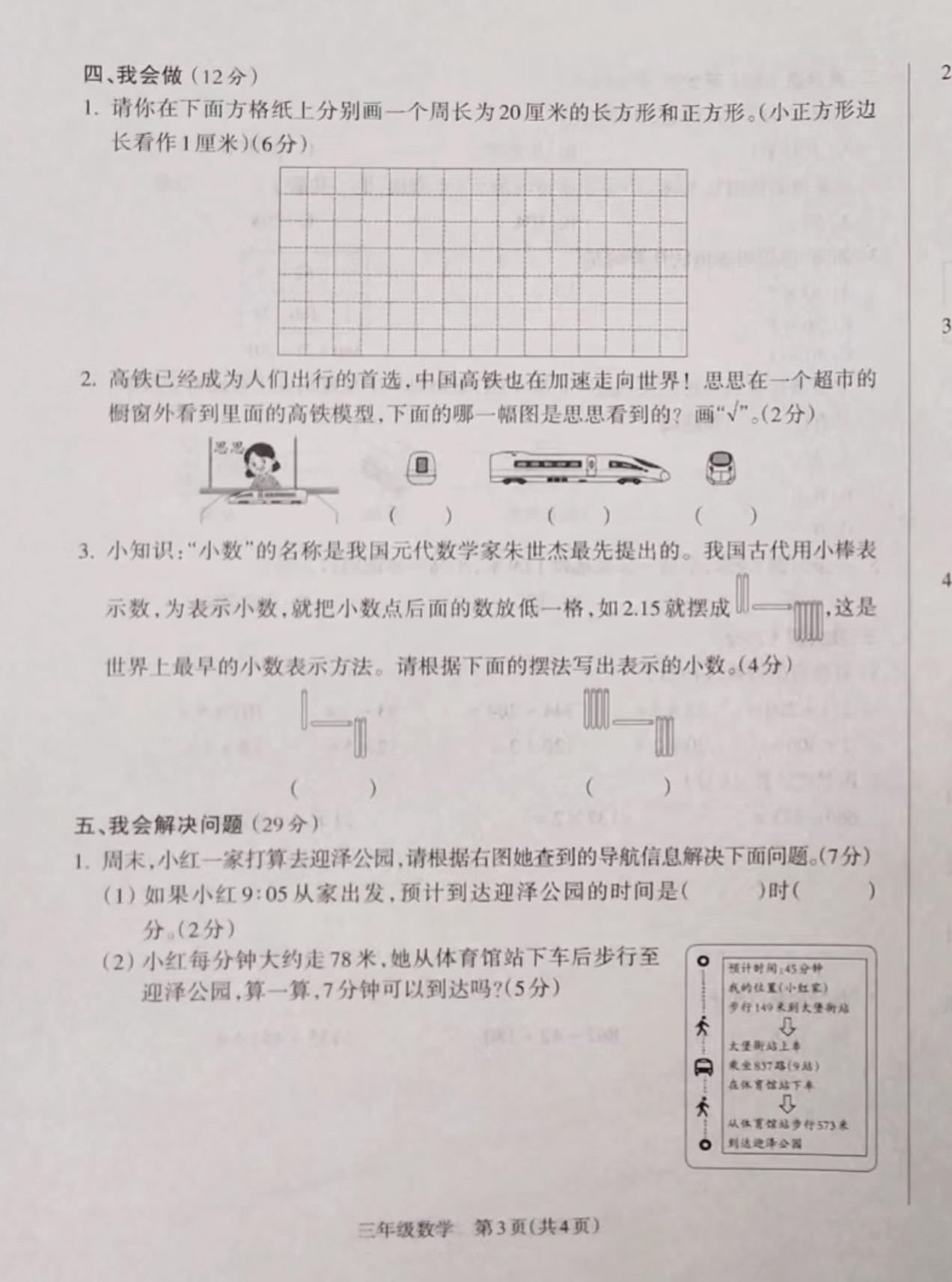 三年级期末考试真题(山西吕梁地区)妞妞已考完,这是孩子的考试题,总体不...