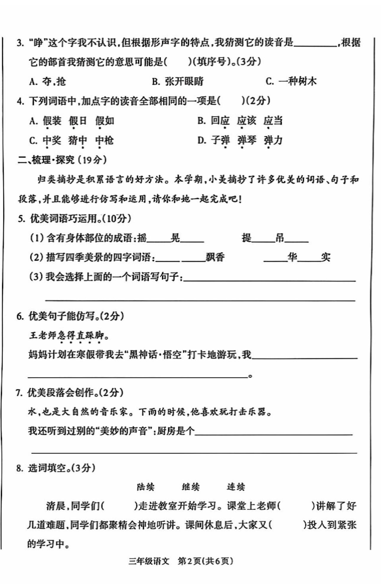 三年级期末考试真题(山西吕梁地区)三年级期末考试 妞妞已考完,这是孩子的考试题,总体不难,好多家长私信我,拿去让孩子们练练手!希望孩子们都能考出自己理想的成绩!