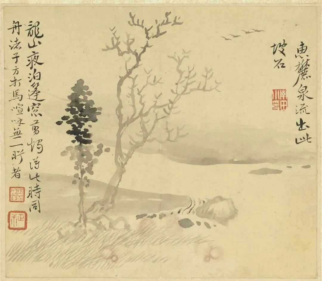 恽寿平在《湖山小景册》中运用了潇洒秀逸的用笔,直接点蘸颜色敷染成画。他讲究形似,但又不以形似为满足,而是力求在形似的基础上传达出更深层次的意境和情感。