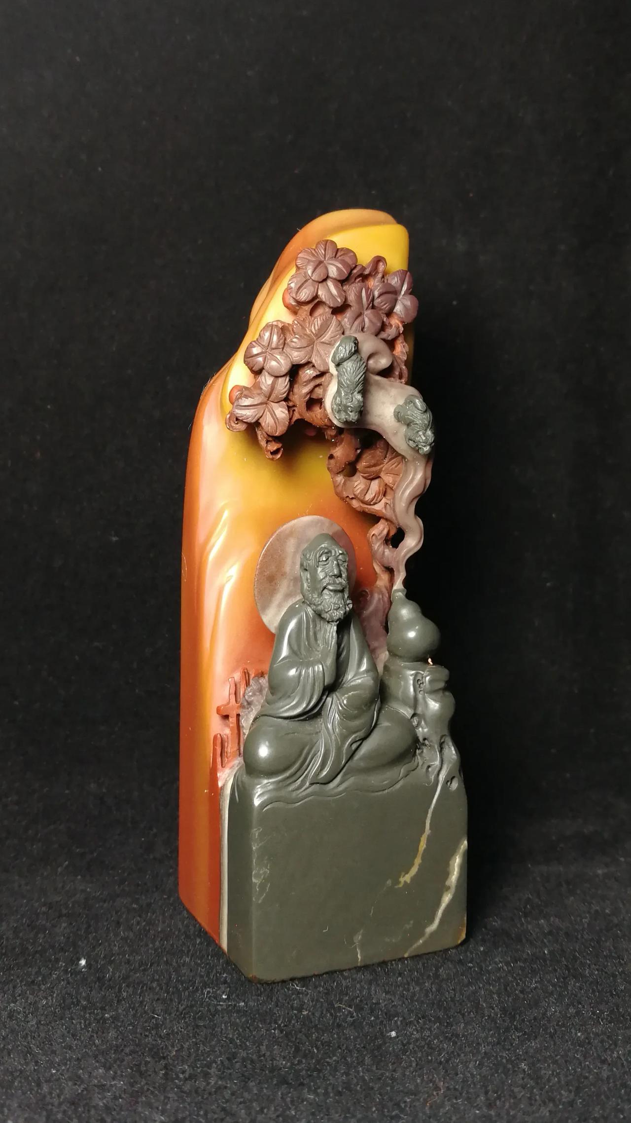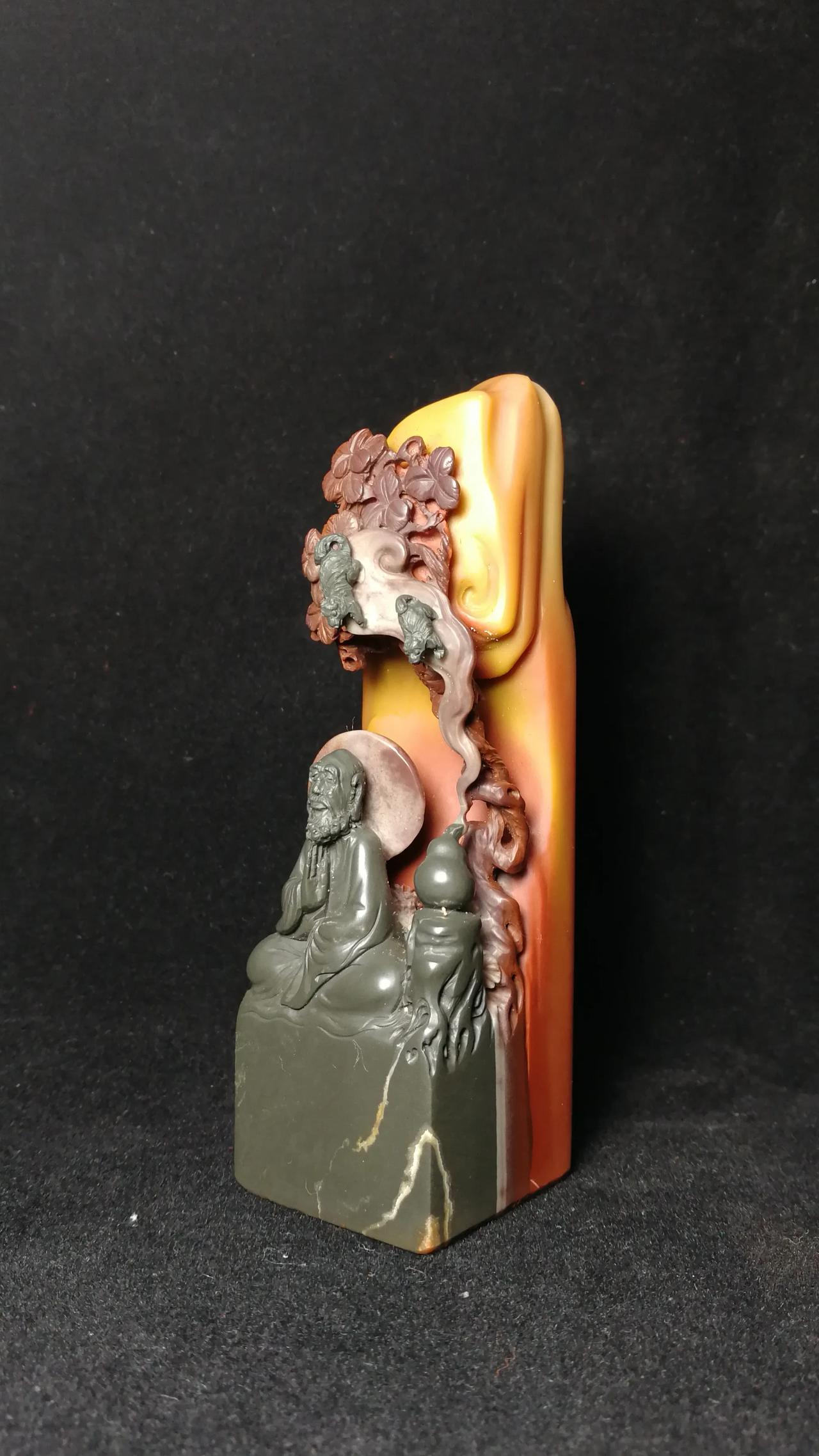 结婚纪念章,广州老友为弟弟结婚嘱刻。 石上阴阳镌凤契,人间岁月证龙纹。这对印章,