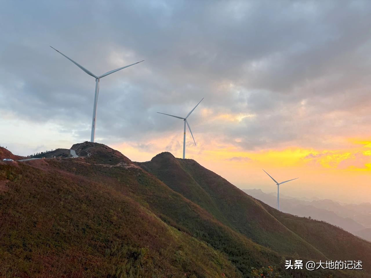 八界山风力发电场,位于广东东清远市的阳山县。一望无际的喀斯特山峰,山头上矗立着无数的风力发电机组,景象颇为壮观。 每一座的山头都可将车直接开上去,路是施工时铺设的,一般家用轿车也能胜任,登顶毫无难度。 接近黄昏时车辆蜂拥而来,那些席地而坐或架起相机的游人,都只为等待观赏那儿落日时的醉人景色。