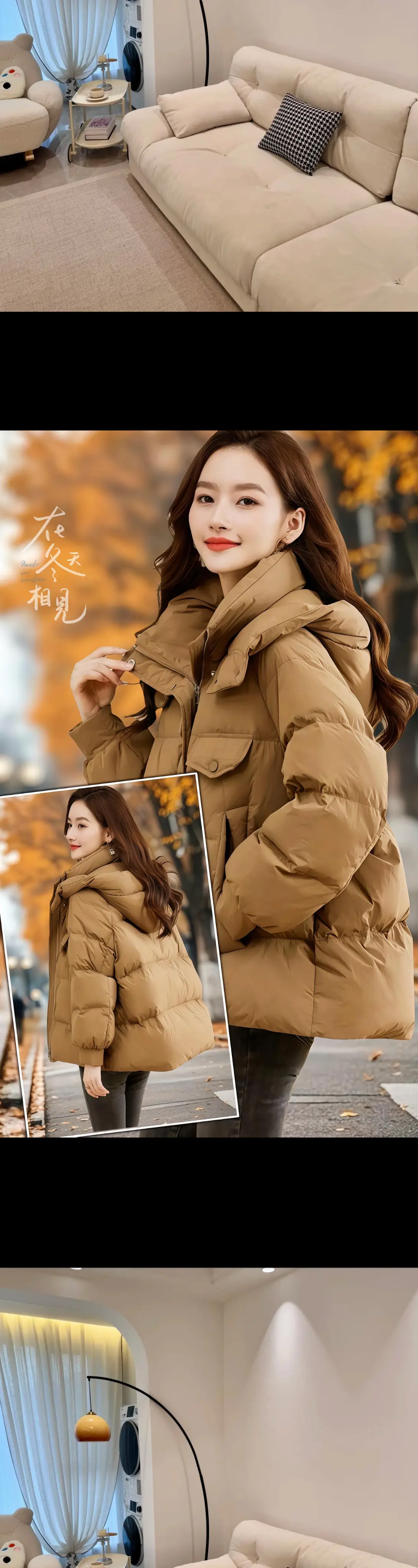 韩版中长连帽棉服,冬日的温暖与时尚担当它那韩版独有的版型,自带一...