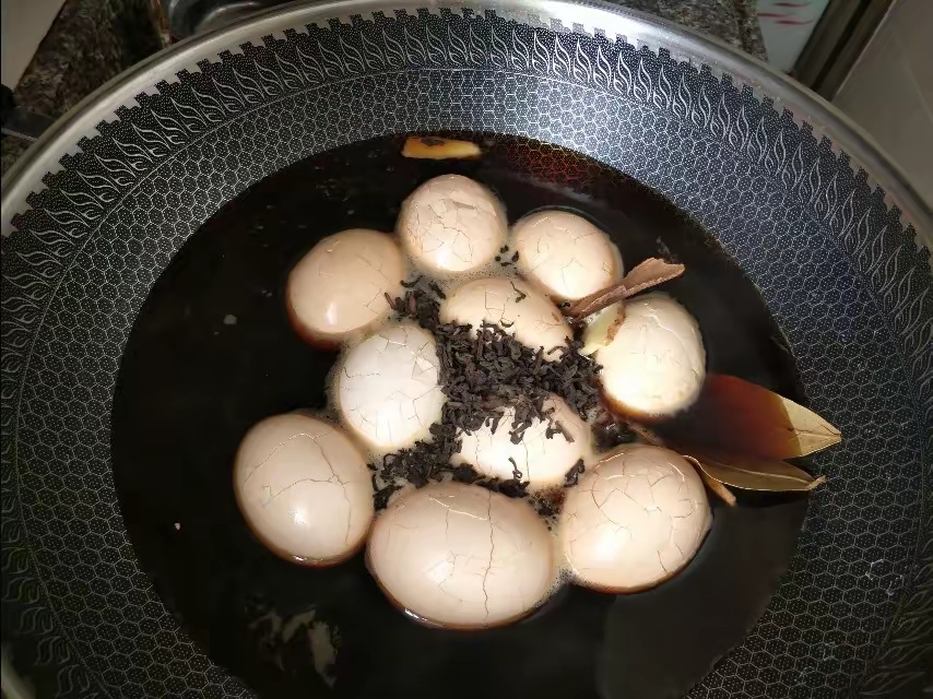 朋友们,你们尝试过自己在家做茶叶蛋吗?今天我把茶叶蛋简单的方法分享给大家,鸡蛋清洗干净,冷水上锅开小火煮八分钟。然后每一个用勺子敲出裂痕,方便入味,加入八角,桂皮,香叶,姜片,一把红茶叶,在调味放入生抽,老抽,盐一块冰糖,煮开之后,小火煮个十来分钟,关火浸泡两个小时以上,有条件的可以浸泡一个晚上,更加入味哦,吃的时候再加热一下就可以了。