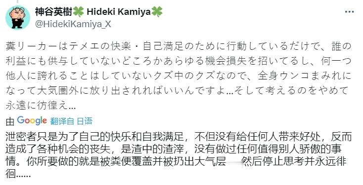 🔸他称这些泄密者为“渣滓中的渣滓”,并表示他们没有做过任何令人感到骄傲的事,应该被粪便覆盖并被扔出大气层,然后停止思考并永远徘徊。