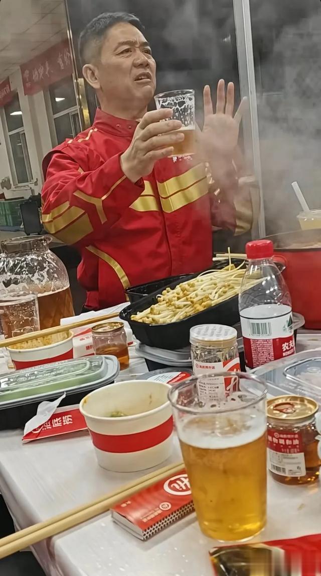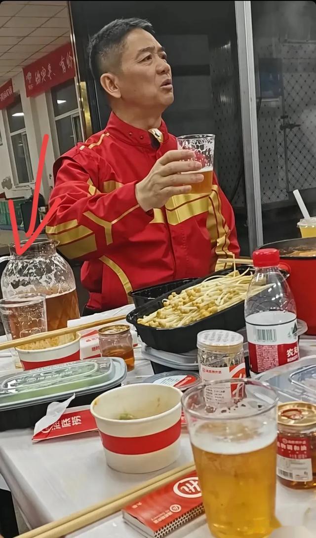 饭桌上一个装啤酒的大桶格外显眼,原来大家喝的是大桶鲜啤,这种大容量跟刘强东的豪迈性格倒是非常相符。