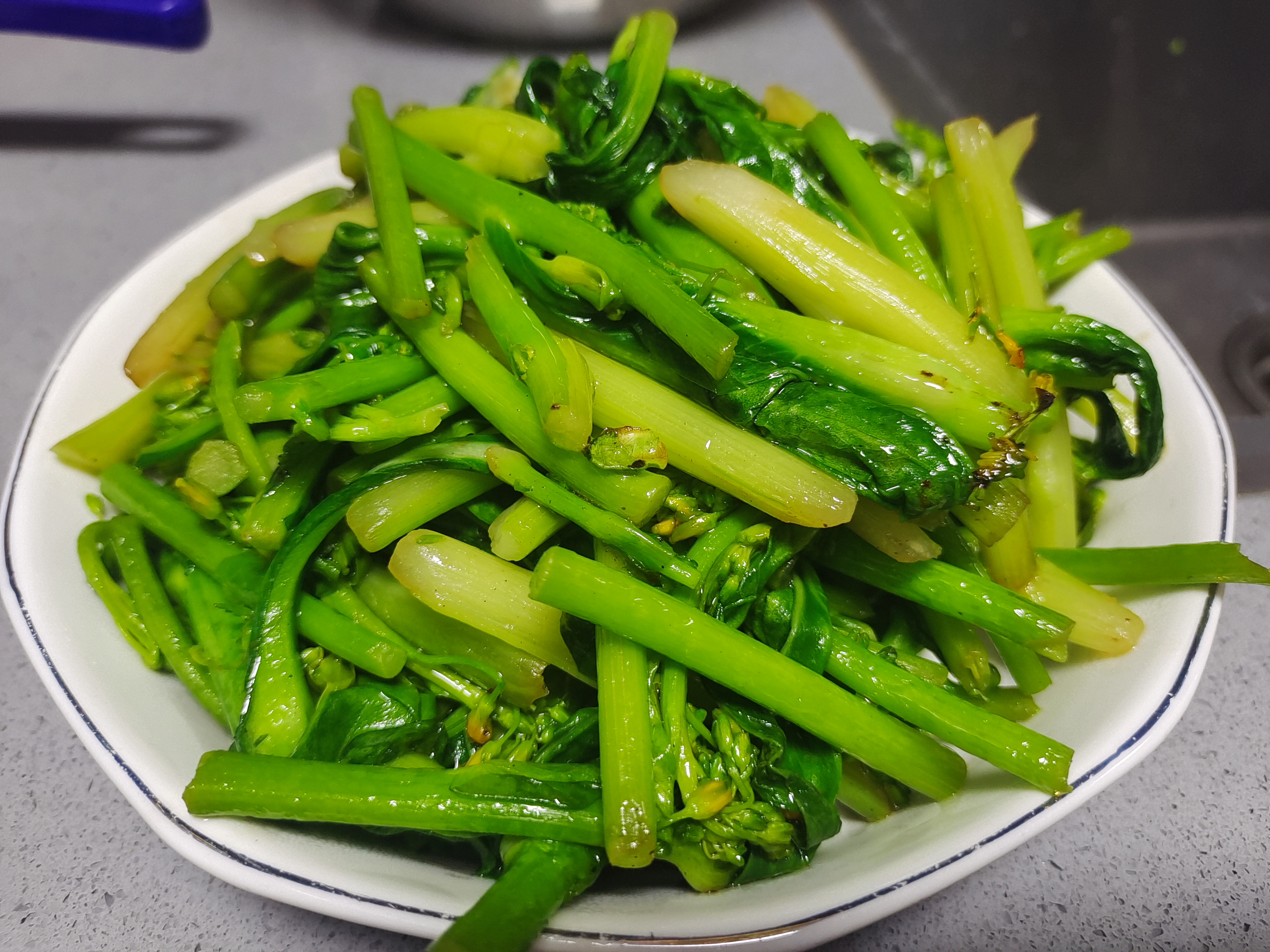 在我们这边,现在吃的最多的青菜,就是这个清炒菜心了。这个菜心是白菜心,现在天气暖长的可多了,如果长了,你不摘它就老了。以后想吃都没得吃,所以每天晚上都有这个菜,每天晚上都有,口感清甜可口,随便炒一炒都好吃。我一般油热放点蒜末爆香,开大火,倒入洗干净的菜心,翻炒几下,加入盐跟蚝油调味,翻炒均匀就可以出锅了,很好吃的菜心哦,不知道你们那边有没有这种菜心?