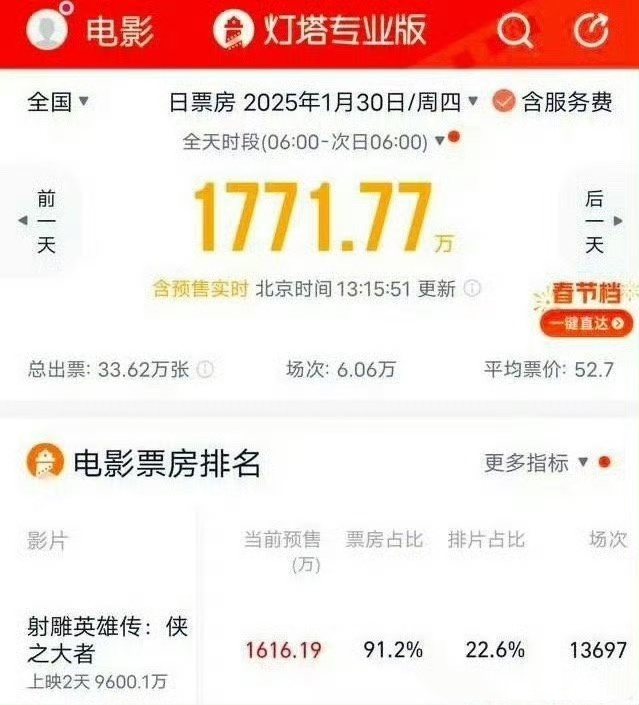 由于《射雕英雄传:侠之大者》的预售票房太过亮眼! 大年初二的排片率比大年初一的排片率提升了5.2%! 肖战应该给粉丝磕一个! 片方应该给肖战磕一个!