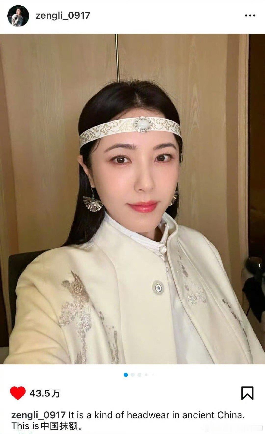 曾黎的抹额火到了国外 曾黎发帖向外国朋友介绍中国传统文化中的“抹额”,并展示了“抹额”的正确佩戴方法,评论区里好多ip,美国、文莱…都说好漂亮、甚至想为了曾黎学中文!